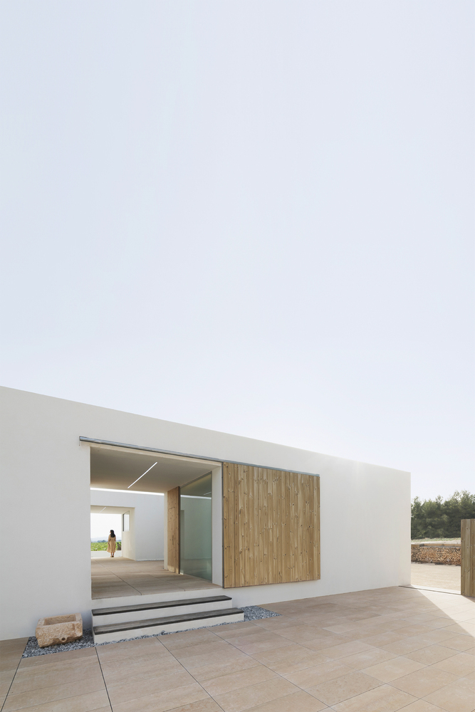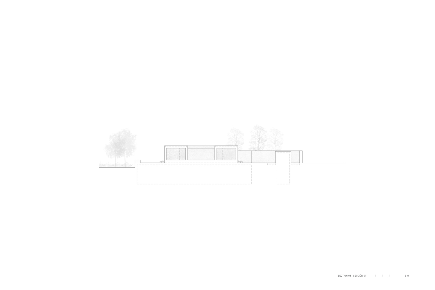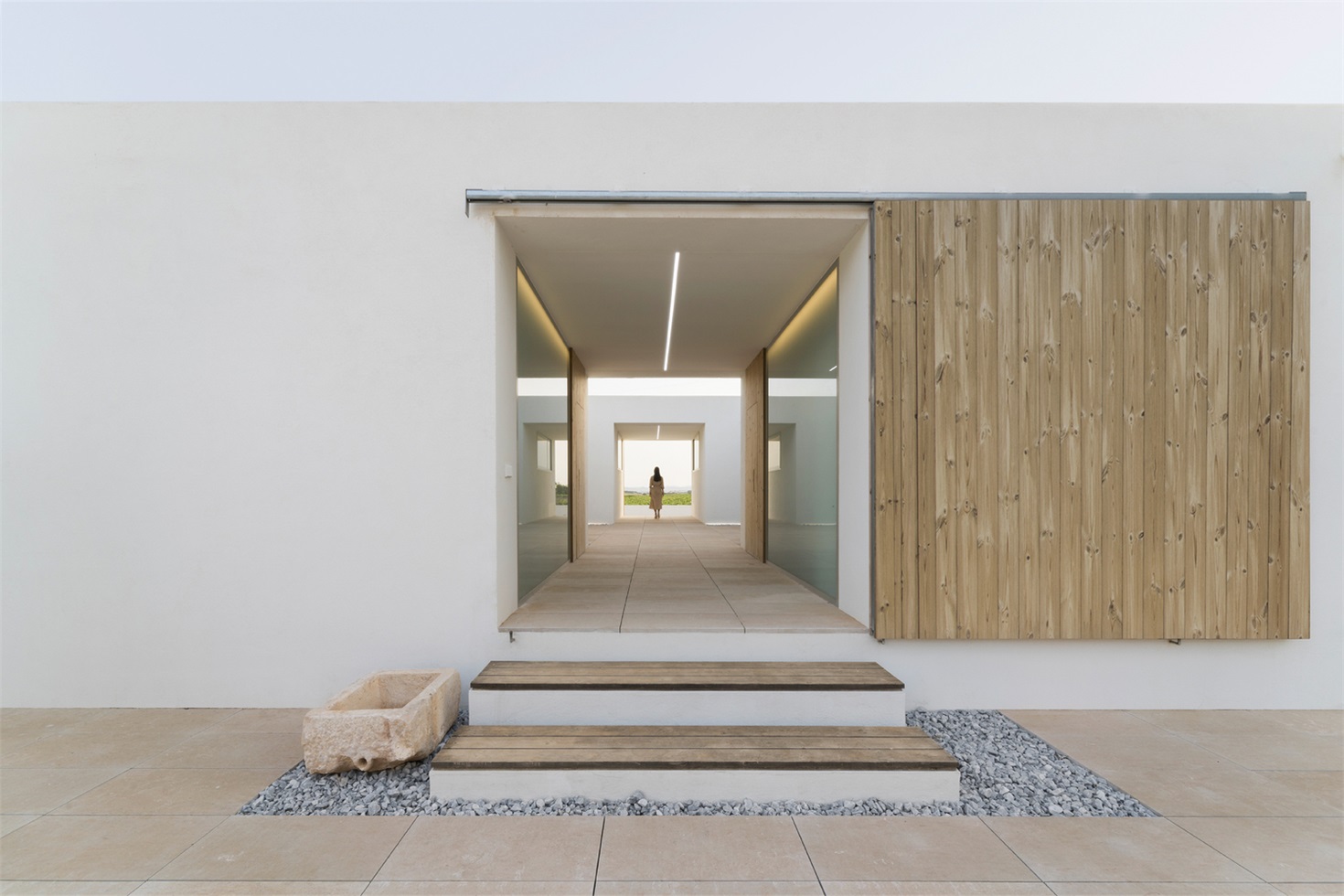 葡萄园之家被构想为一个宝箱,一座守护此地精神的圣殿。其空间由光影塑造,通过大型活动面板与景观形成开合关系 —— 这些面板如同空灵的面纱,时而揭示、时而隐藏周围环境的静谧诗意。从室内向外望去,自然的气息悄然渗入,带来树叶间的风声私语与湿润泥土的芬芳。这里没有生硬的界限,只有家与地平线、庇护所与广阔天地间的流畅过渡。因为在此处,居住不仅是占据空间,更是与它融为一体,成为其永恒心跳的一部分。