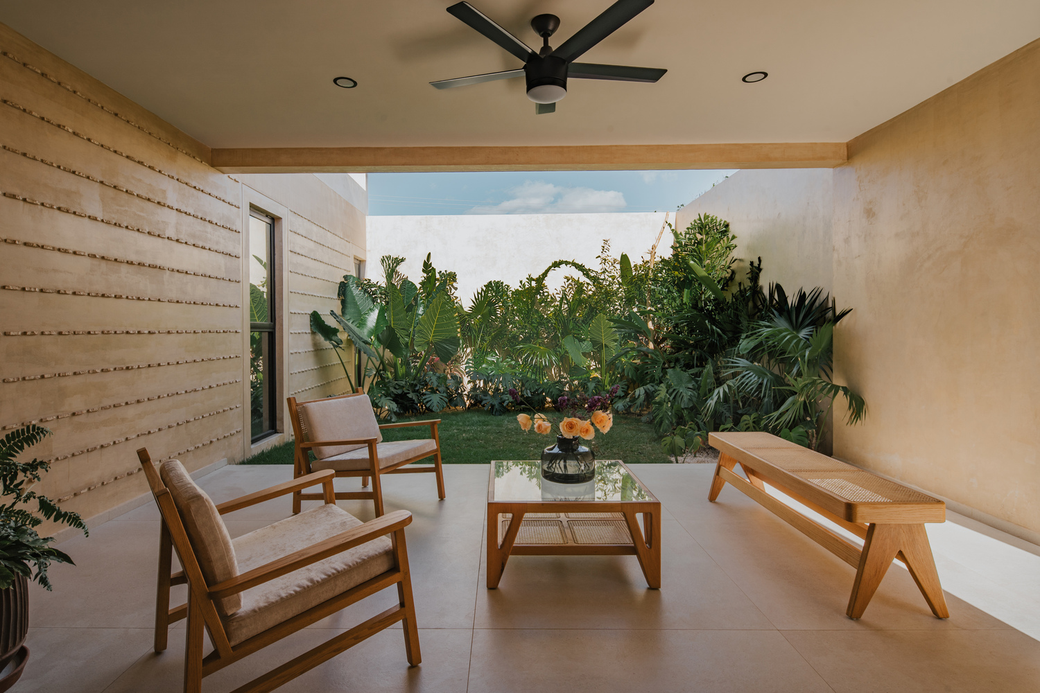 我们保留了 40% 的原始建筑结构,其余部分以手工方式融入新设计 —— 每一处细节都像缝制一件独一无二的衣物般精心对待。楚克木(chukum,一种当地传统材料)、墙面的石板(rajuela)、手工编织的藤条(petatillo),以及由能工巧匠打造的美国橡木,这些选择不仅关乎美学,更是对当地工艺、土地以及建筑记忆的致敬。