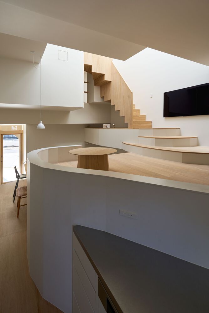 该日式住宅设计位于大阪市的一个住宅区。客户购置了一块被细分用于建造成品房的土地,项目由此展开。所购地块为旗杆式地块(形状类似旗杆,有较窄的通道连接主要道路和相对较大的建筑区域)。不过,由于旗杆部分的宽度可达 3 米,这为设计提供了一定的操作空间。