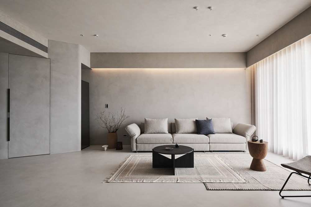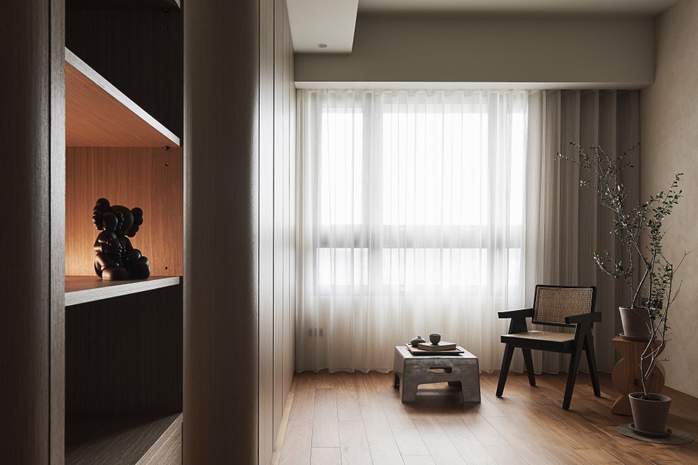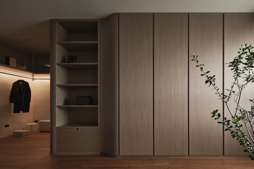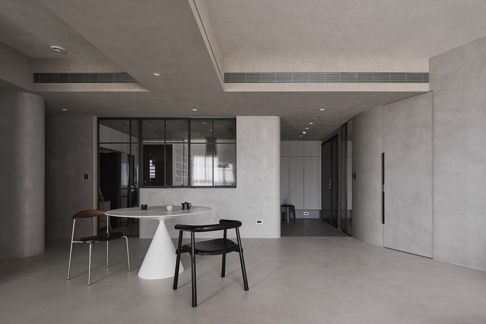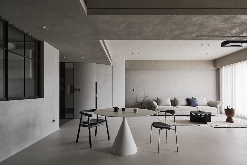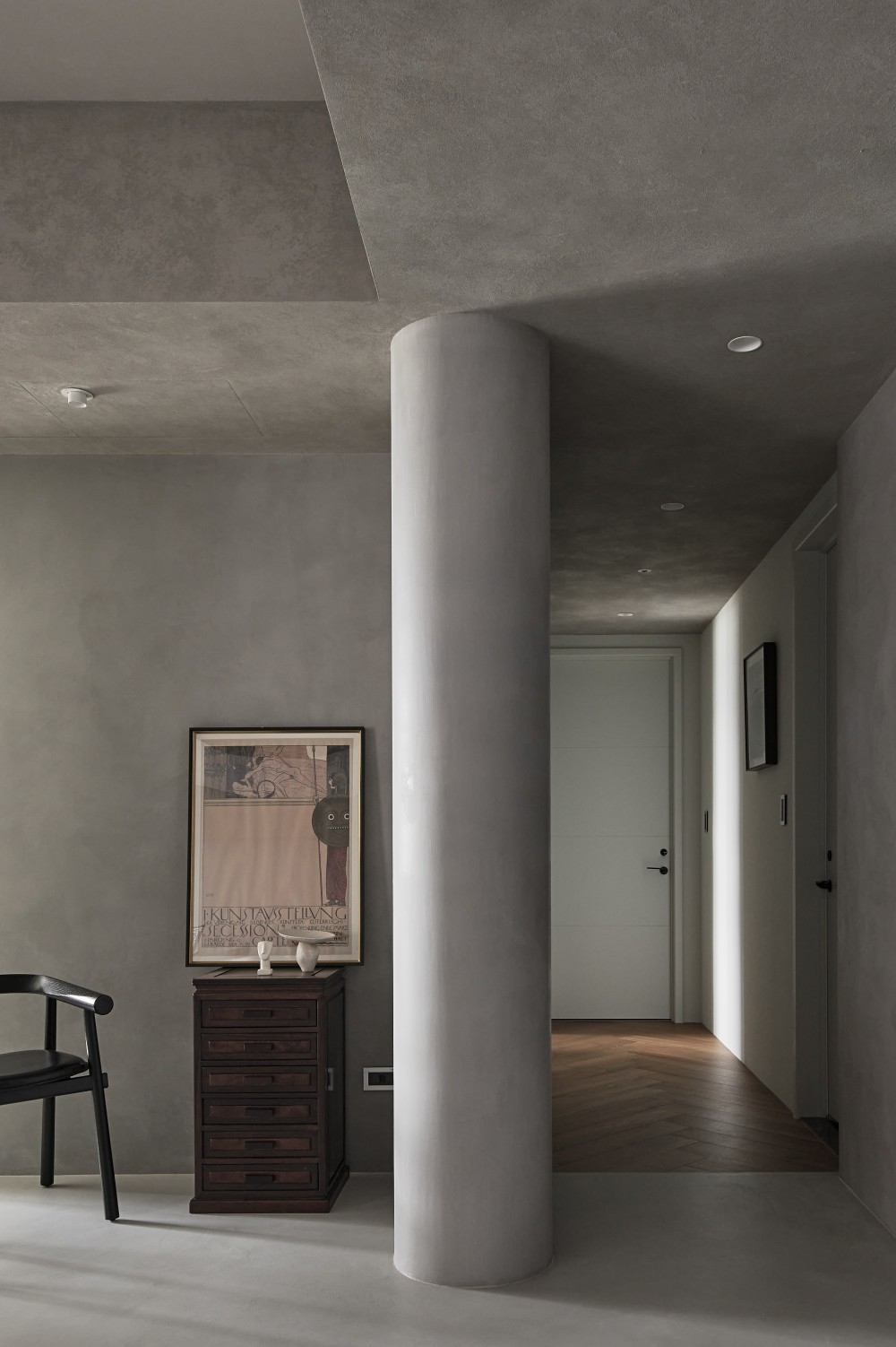 该亲子住宅设计理念:成为父母,生命开启全新篇章。本案从亲子宅出发,围绕小孩主题,却不流於稚气,兼顾大人需求,营造和谐诗意的住家。采中心释放方式,机能往四周摆、中央留空,并以悬空书架与投影机让出地面,放大空间,让孩子恣意奔跑。置入储藏墙体、走道柱体与圆桌等弧形量体,为通透公领域增添隐微引导,凝聚视线朝向窗景。柱体与孩房间的口袋空间,则作为公私领域缓冲,让动线有停顿,烘托出景深层次。