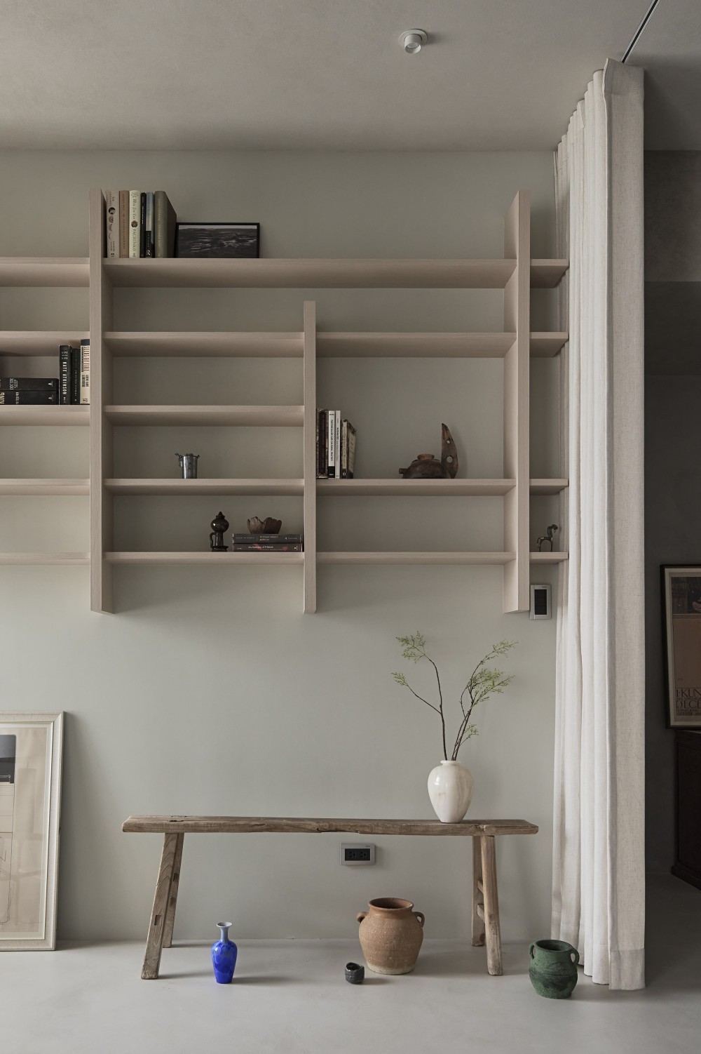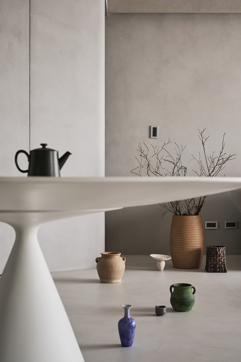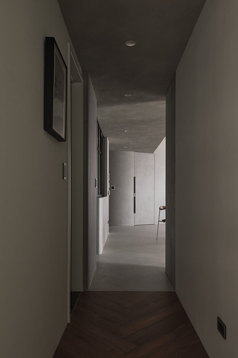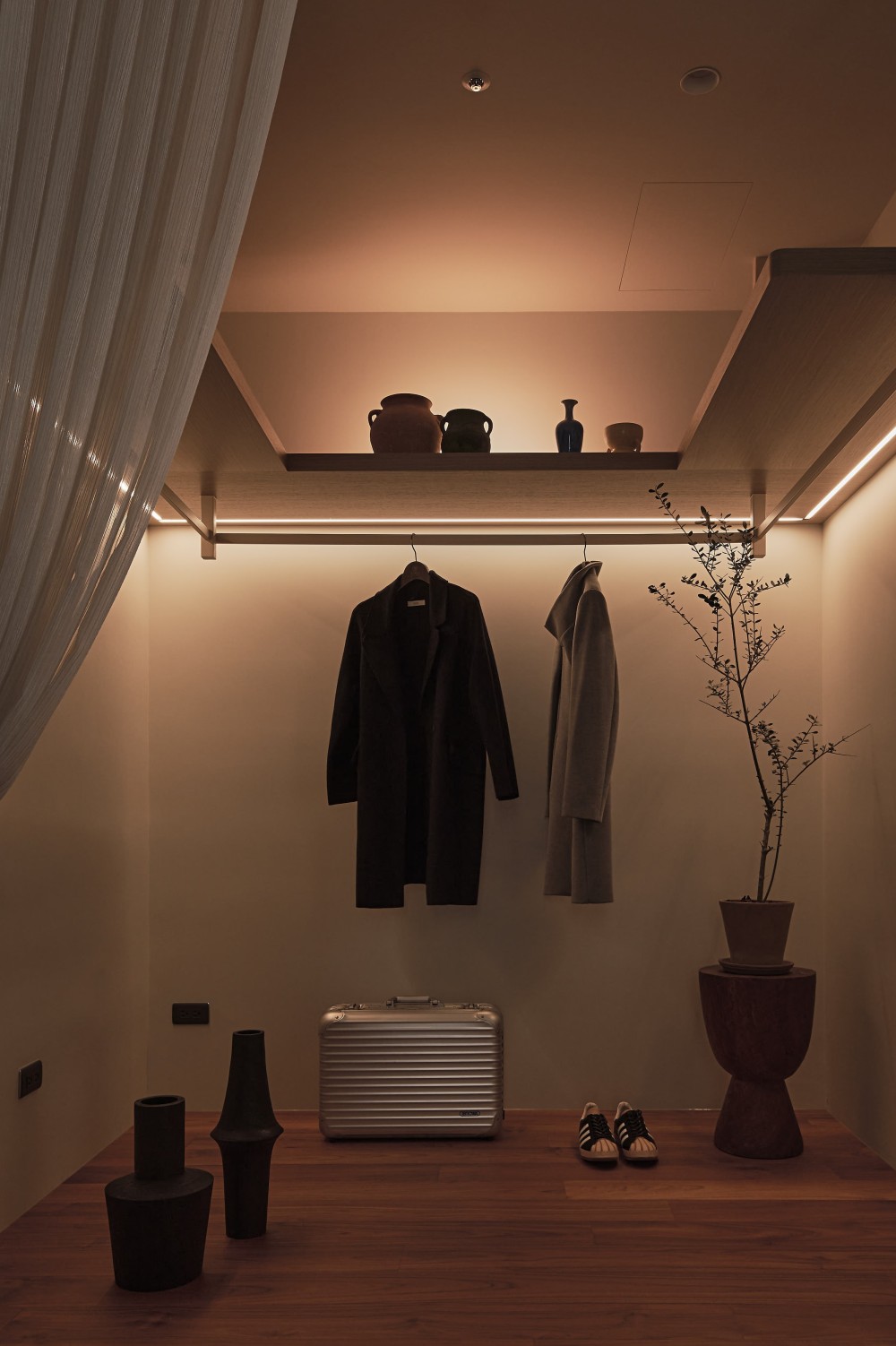 该亲子住宅设计理念:成为父母,生命开启全新篇章。本案从亲子宅出发,围绕小孩主题,却不流於稚气,兼顾大人需求,营造和谐诗意的住家。采中心释放方式,机能往四周摆、中央留空,并以悬空书架与投影机让出地面,放大空间,让孩子恣意奔跑。置入储藏墙体、走道柱体与圆桌等弧形量体,为通透公领域增添隐微引导,凝聚视线朝向窗景。柱体与孩房间的口袋空间,则作为公私领域缓冲,让动线有停顿,烘托出景深层次。