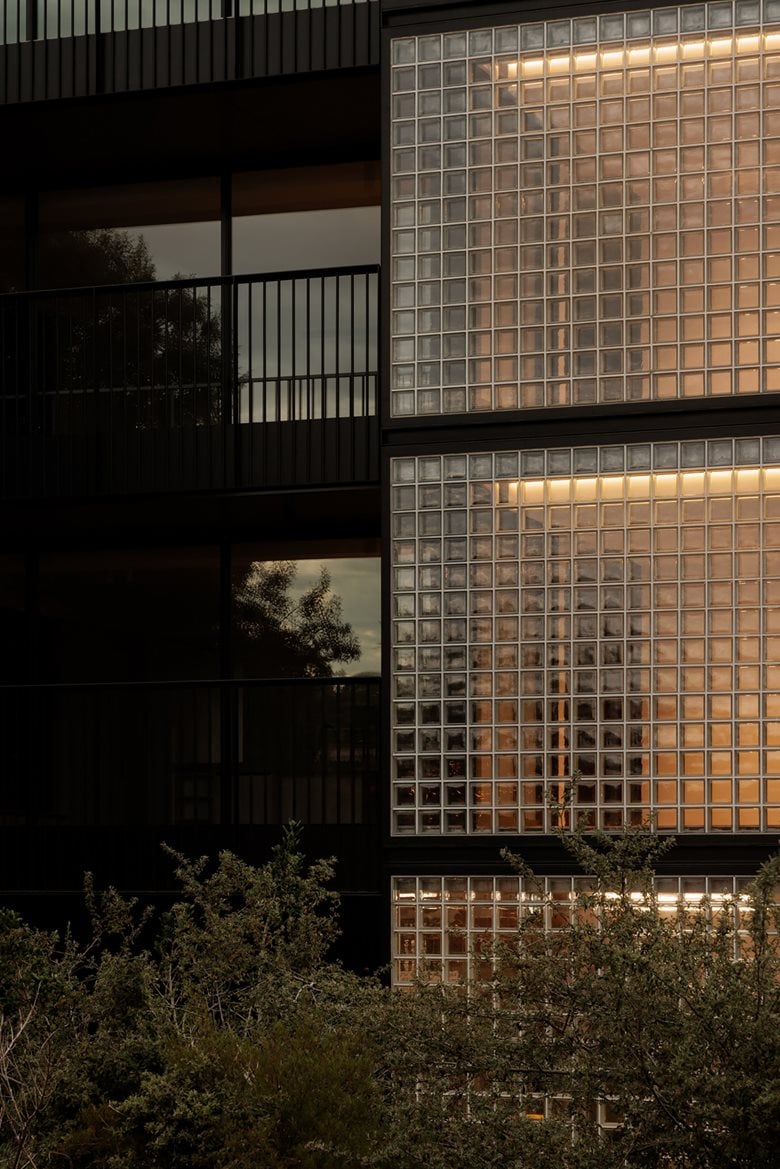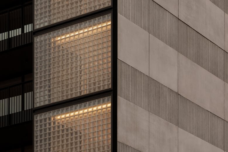 为应对施工限制,设计融入了模块化理念与简洁利落的表达风格 —— 这种风格在高密度城市环境中十分常见。项目采用预制构件,南北立面均使用玻璃砖墙与可开启式嵌入式玻璃窗,最大限度地引入自然光线并拓展景观视野。考虑到未来北侧用地可能新建建筑,为保障长期采光不受影响,南北立面需保持完全通透,同时将建筑核心筒设计得尽可能精简。立面预制构件上精致的金属细节,不仅住户在室内可欣赏,相邻火车站的行人也能清晰看见。