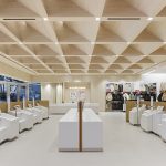 一楼用石灰绿色调的微水泥为顾客更进一步的空间体验制造有趣的铺垫。二楼用橡木拼花地板和柔和的淡米色调微水泥墙装饰,营造出空间的平质、中和之感。三楼的第一个空间整体由黑色调的微水泥覆盖,配合黑色热轧钢展示架,氛围静谧。