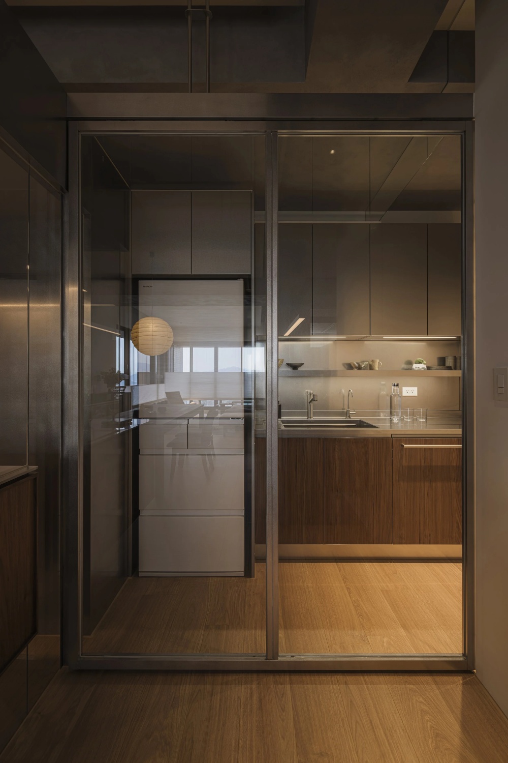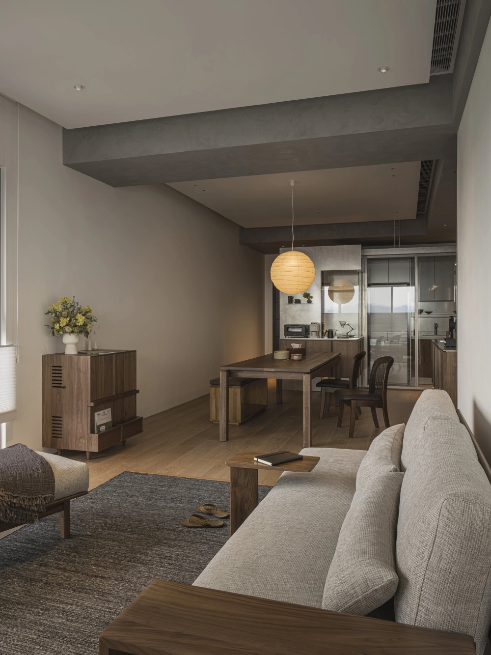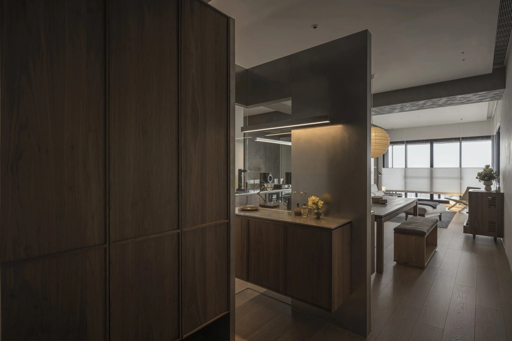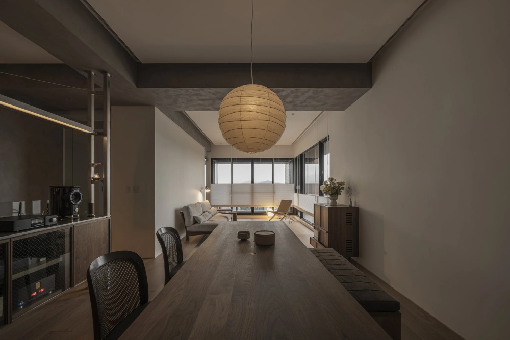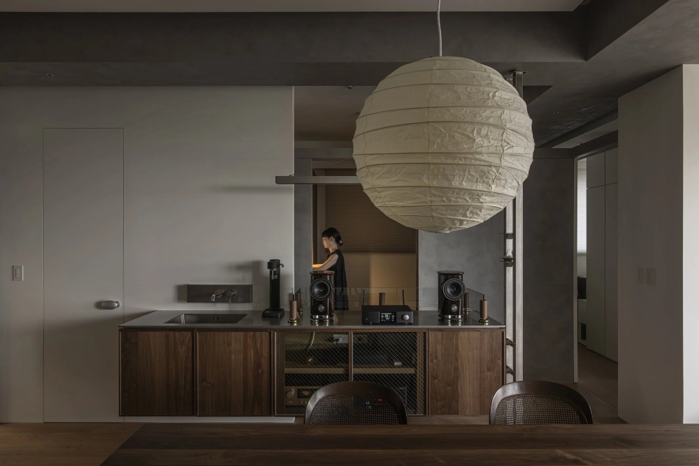 这个家最终成为了一个“温度刚好的生活容器”——它不冰冷,因为处处藏着生活的烟火气;不浮躁,因为有为专注预留的静谧空间。隔间柜体的动线设计、书房与餐桌的尺度对比、音响柜的声音赋能,所有细节都在诠释着同一个理念:家的价值,不在于功能的完美区分,而在于能否让人在其中自在地切换角色,安心地展现自我。当笔电的亮光与餐桌的灯光在此交汇,当工作的思考与生活的欢笑在此交融,我们终于找到那个“刚好的温度”——在这里,生活与工作共生,专注与放松同行,这便是家最本真、最温暖的样子。
