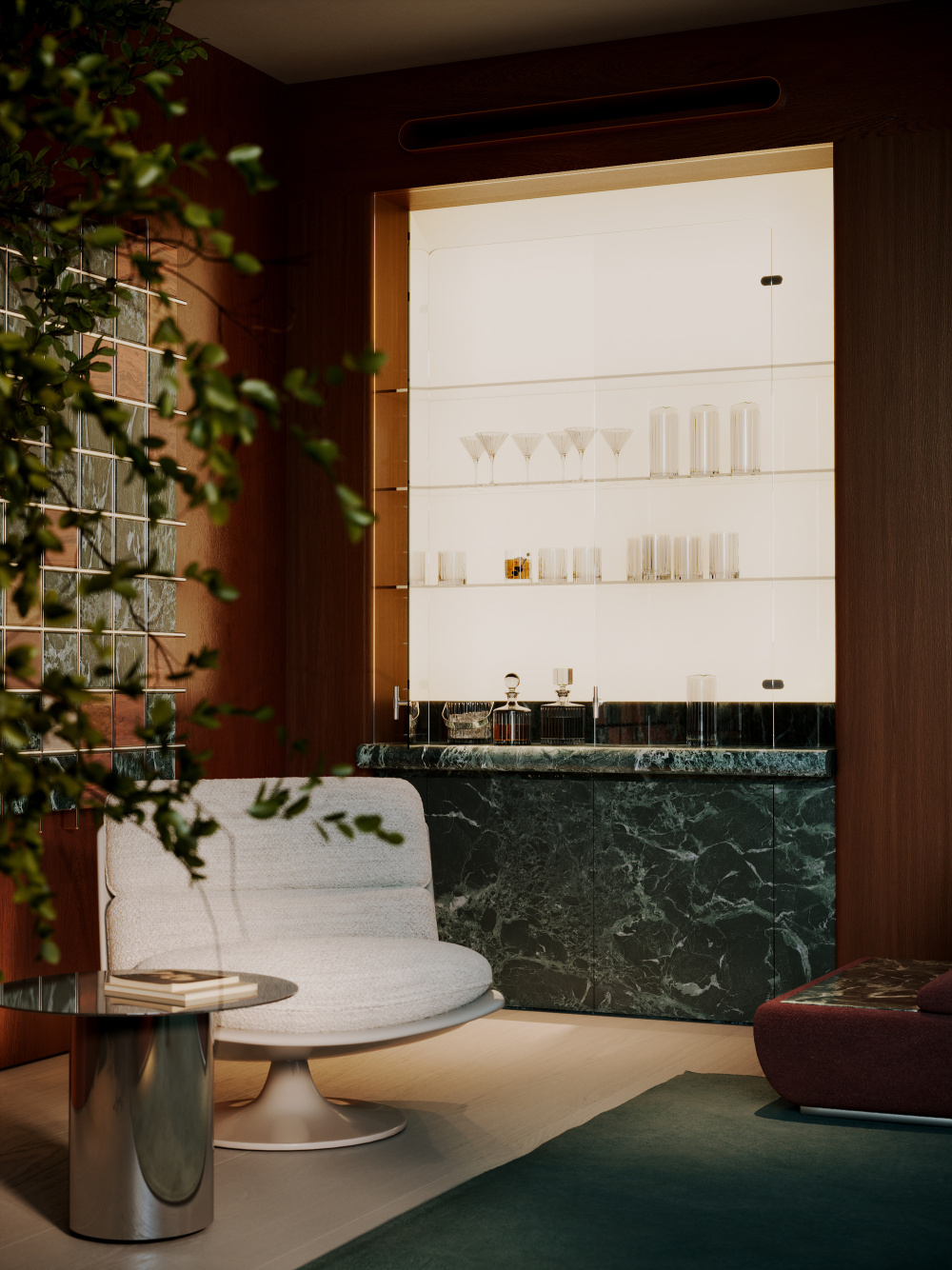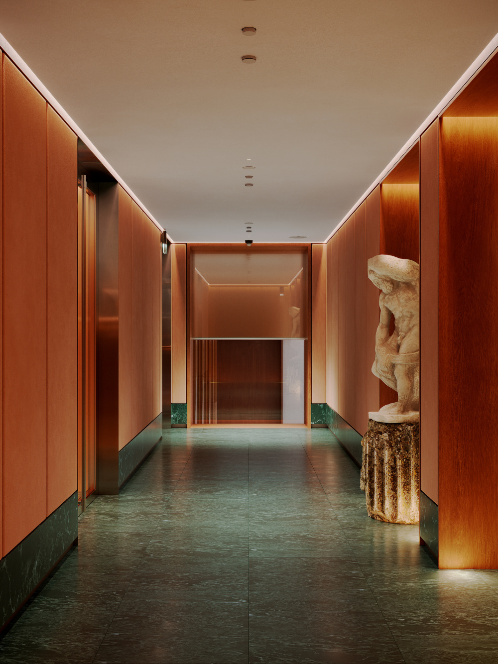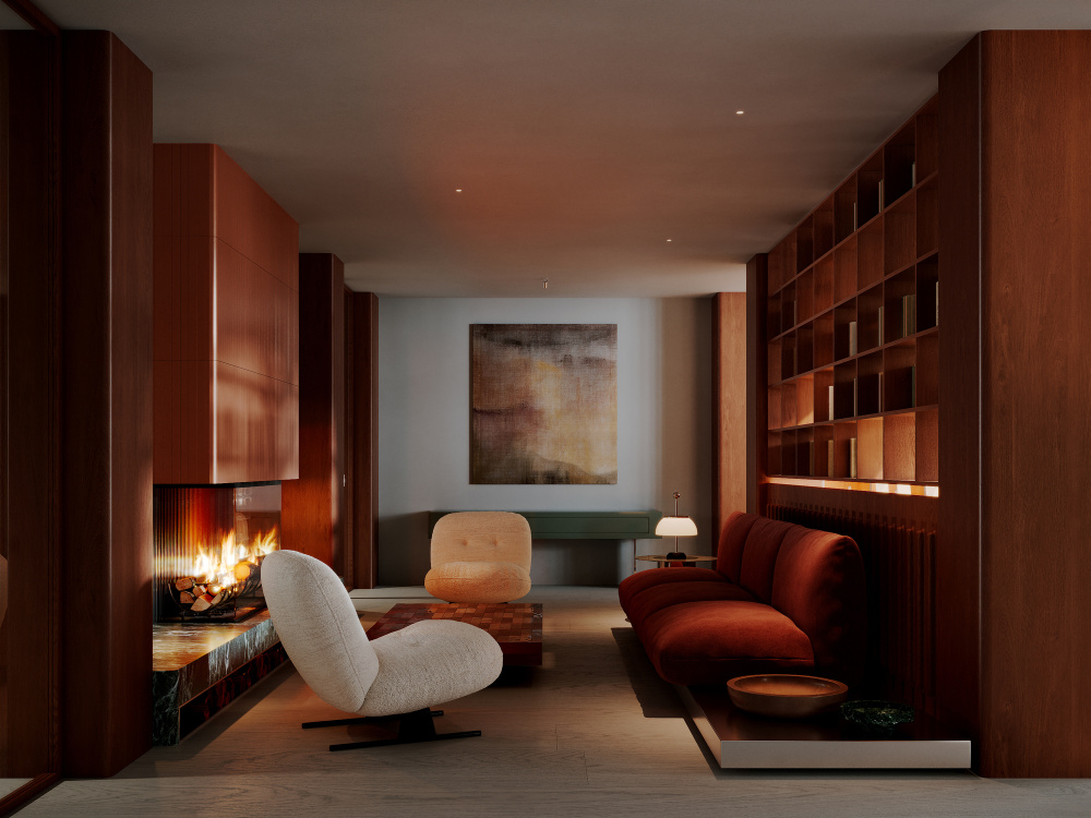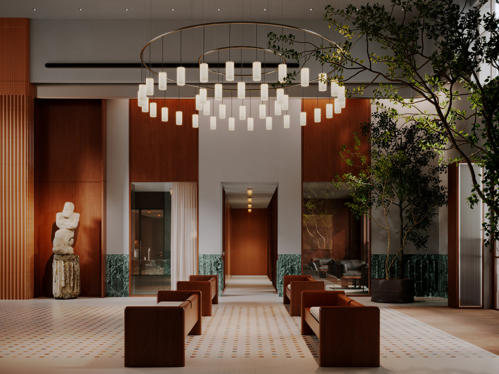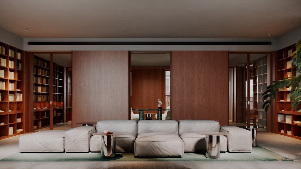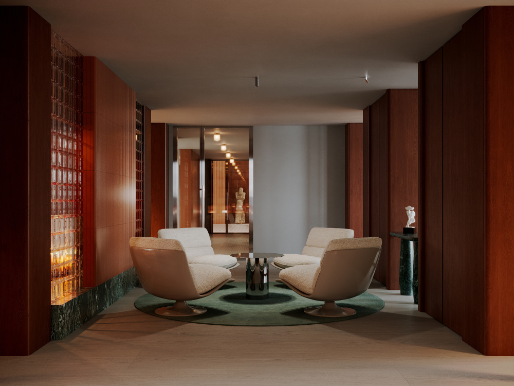 1300 多平方米的俱乐部基础设施,是整个项目的灵魂载体。Babayants 团队将其划分为私人文化活动区与私人娱乐区两大板块,并非简单的功能分割,而是试图构建一个能激发创造力、智力探索与深度反思的空间生态。私人文化活动区以 “静谧的精神滋养” 为基调,这里既可以举办小型艺术展、学术沙龙,也能成为收藏家交流藏品的私密场所。空间的尺度被精心把控,既保留了大厅的开阔感,又通过软装与隔断营造出适宜交流的亲密氛围,让文化的碰撞与思想的交锋在此自然发生。而私人娱乐区则转向 “轻松的社交体验”,无论是休闲聚会、影音观赏还是轻奢的休闲活动,都能在专属空间内得到满足。两个区域相互独立又通过公共大厅形成联动,让使用者在文化的深度与娱乐的松弛之间,找到恰到好处的平衡。