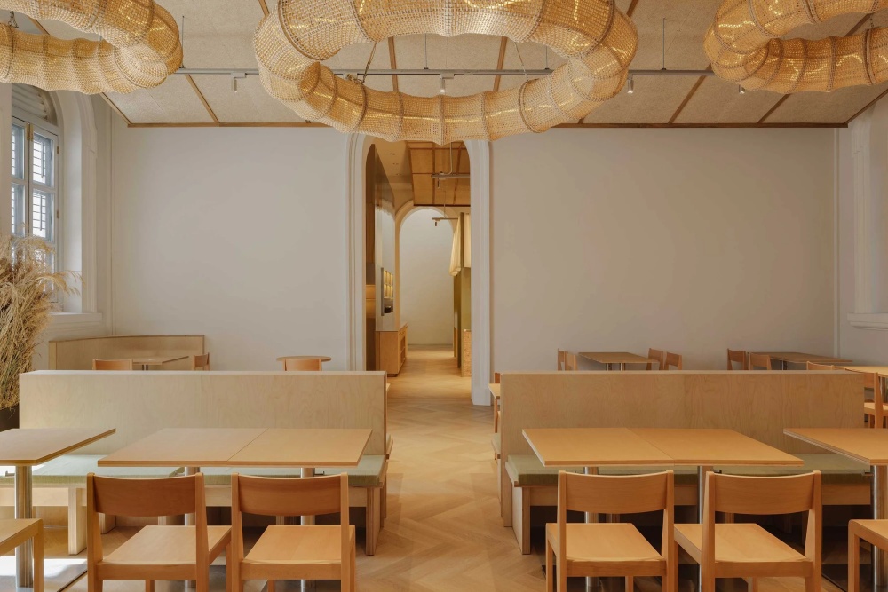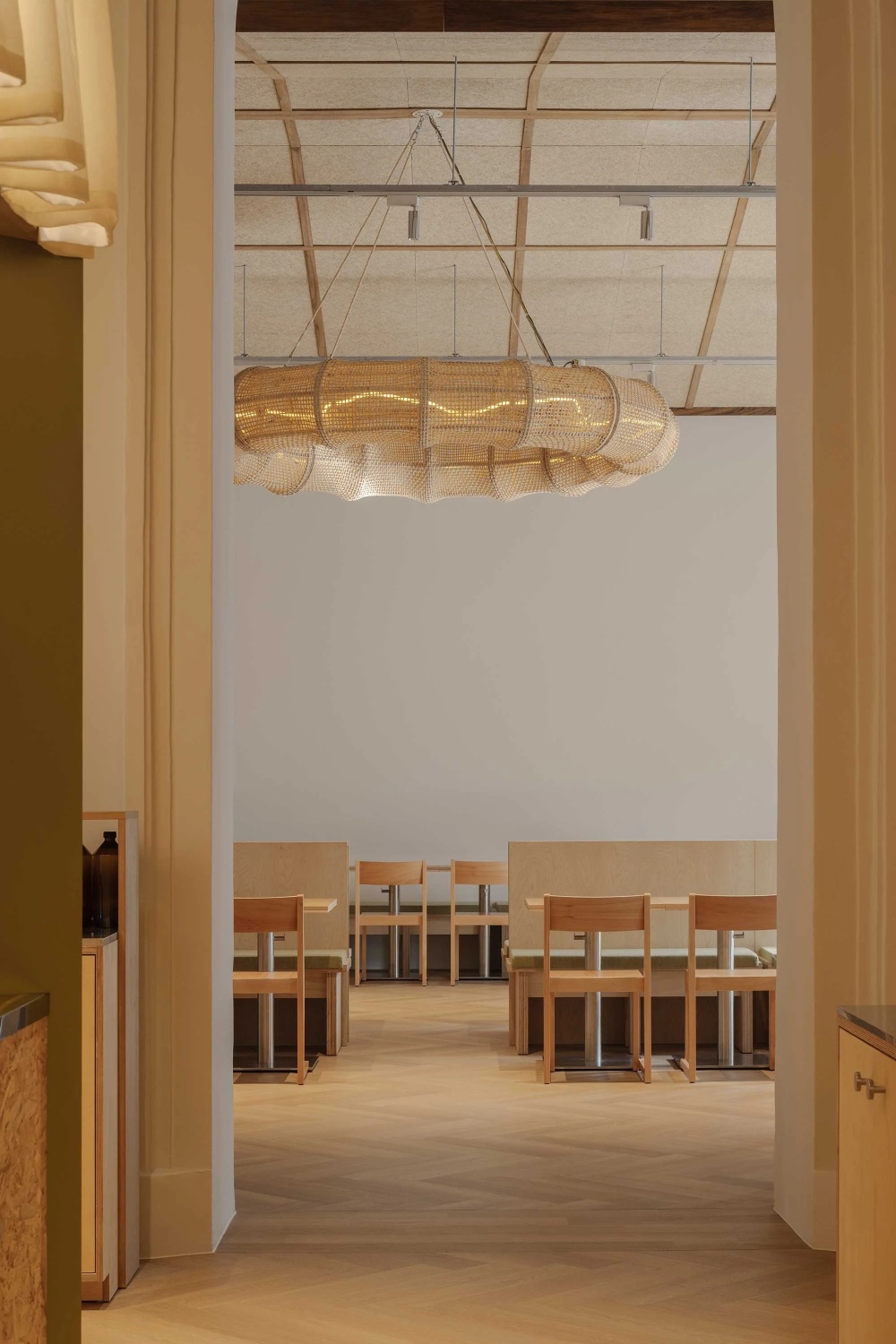Grand Dame 的设计,始终围绕 “呼应新菜单” 与 “贴合文化基因” 两大核心,将现代感与东南亚特色悄然融入历史空间:材质与色彩:克制中的地域呼应没有选择浮夸的装饰,而是用 “低饱和度的自然色调” 与 “温润的本土材质”,让现代设计与博物馆的历史氛围相融。或许是浅木色的桌椅,带着东南亚木材特有的纹理,传递出自然质朴的质感;又或是局部点缀的藤编元素、手工陶瓷摆件,暗合新加坡多元文化中 “热带风情与手工温度” 的特质,既贴合新菜单中 “现代东南亚菜肴” 的定位,又不抢夺历史空间的主角地位。空间布局:开放与私密的 “舒适对话”考虑到博物馆空间的公共属性与小酒馆的社交需求,布局上兼顾 “开放通透” 与 “私密互动”。可能是沿窗区域设置的长条吧台,让食客能一边用餐,一边感受博物馆建筑的光影变化;也可能是角落处用矮屏风分隔的小型卡座,屏风上或许印有简化的新加坡传统图案,既营造私密感,又暗含文化隐喻。整个空间没有刻意的隔断,却通过家具摆放与细节设计,自然划分出不同的用餐场景,适配单人简餐、朋友小聚等多元需求。