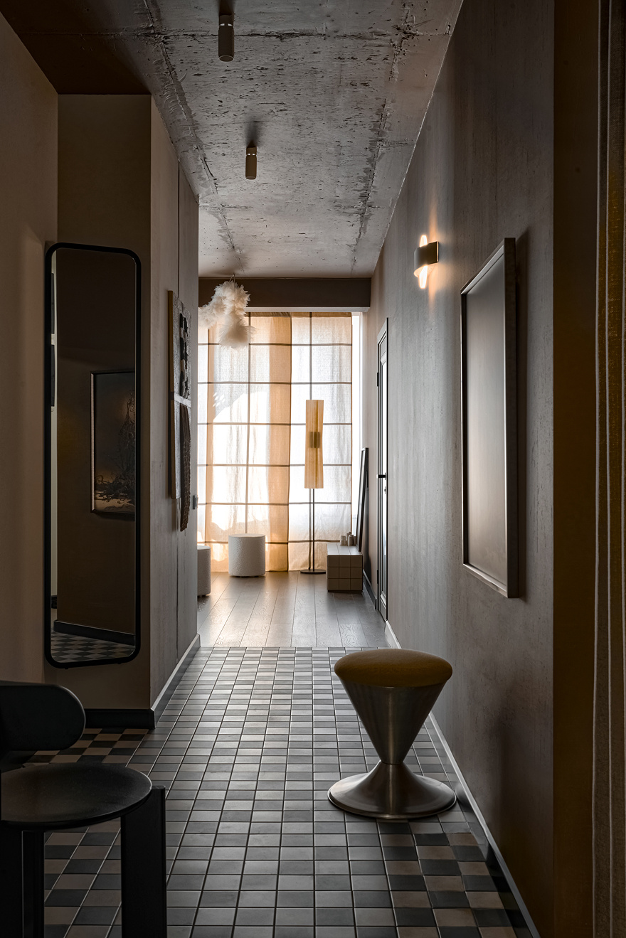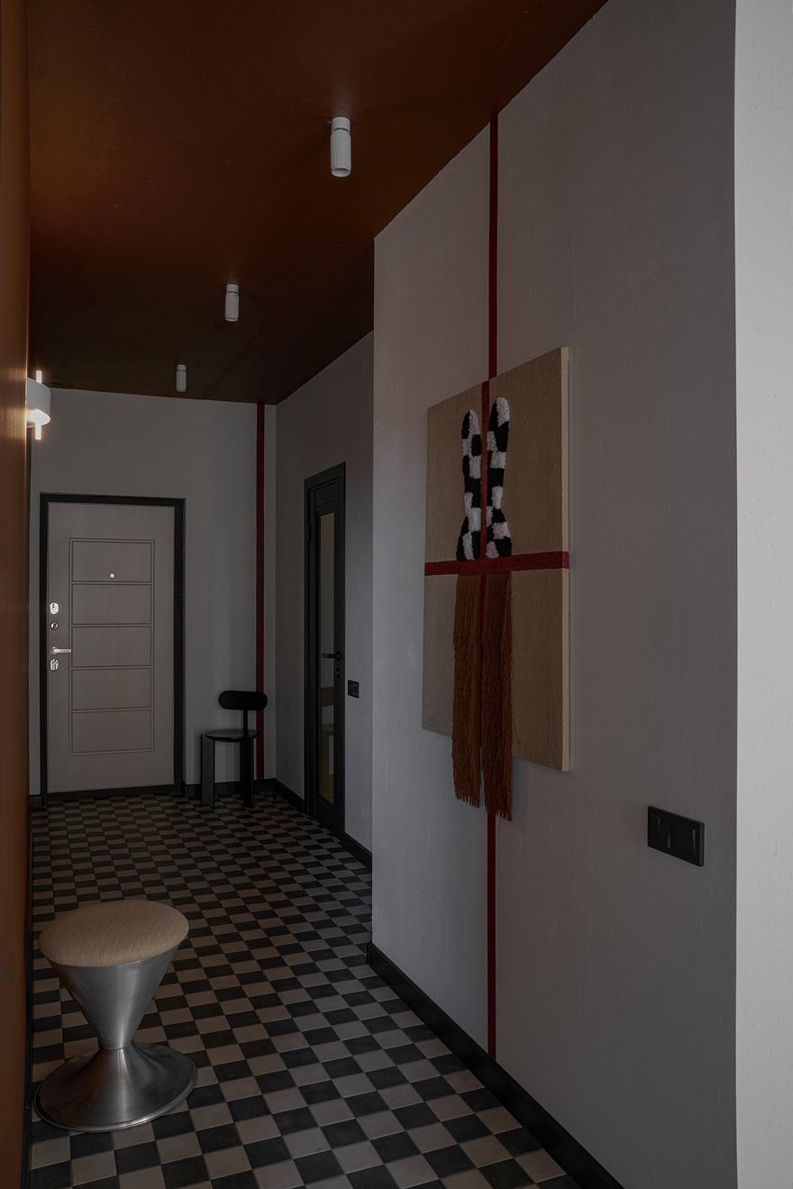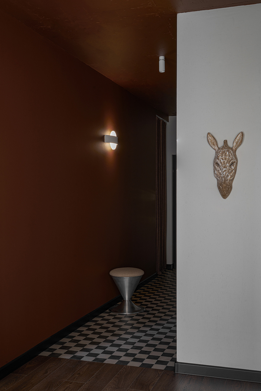细节是 “微奢” 风格的精致密码,案例中的每一个细节都经过精心考量。装饰画与摆件的艺术加持:墙面的装饰画、角落的艺术摆件,如走廊的抽象画、客厅的雕塑摆件,都为空间注入了艺术气息,提升了 “微奢” 的文化内涵;家具造型的独特设计:沙发的弧形造型、椅子的简约线条,家具的每一处造型设计都兼具美观与实用,成为空间里的 “精致符号”;墙面与顶面的工艺处理:墙面的格纹造型、顶面的深棕涂装,通过特殊的工艺处理,让墙面与顶面不再单调,成为空间装饰的一部分,进一步强化了 “微奢” 的质感。这套小户型案例,成功地在有限空间里实现了 “微奢” 风格的营造,为小户型设计提供了宝贵的借鉴。它告诉我们,“微奢” 并非大空间的专属,通过色彩的精准把控、材质的多元碰撞、光影的艺术运用、布局的巧妙设计以及细节的精致雕琢,小户型也能拥有奢华与精致的居住体验,成为承载高品质生活的理想居所。
