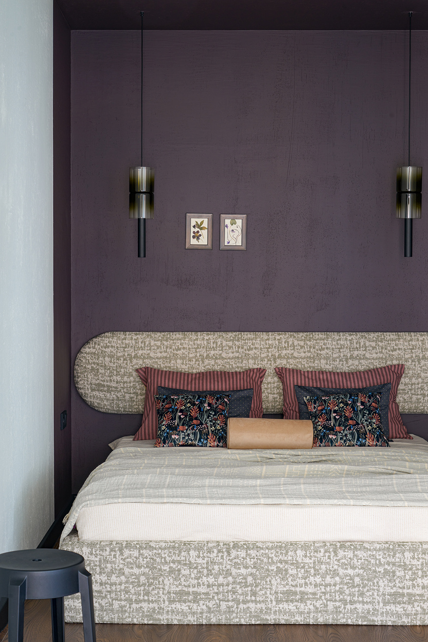 色彩是 “微奢” 氛围的核心营造者。案例中,以深棕、酒红等复古色调为基底,搭配金属色、亮色点缀,构建出既复古又奢华的视觉体系。深棕的空间底色:客厅与走廊的深棕墙面、顶面,如同为空间铺上了一层复古的绒布,传递出沉稳与高级感。这种浓郁的色彩,打破了小户型常见的 “浅色调扩容” 思维,用色彩的深度营造出空间的厚重与奢华感;亮色的点睛之笔:餐厅的浅蓝色椅子、卧室的花卉图案床品等亮色元素,如同投入复古深潭的石子,激起视觉的涟漪。它们在复古色调的衬托下,更显鲜亮,为空间注入了活力与精致感;金属色的轻奢点缀:灯具、摆件等细节处的金属色运用,如客厅的金属壁灯、走廊的金属凳子,以冷冽的光泽与复古色调形成对比,强化了 “微奢” 的质感表达。
