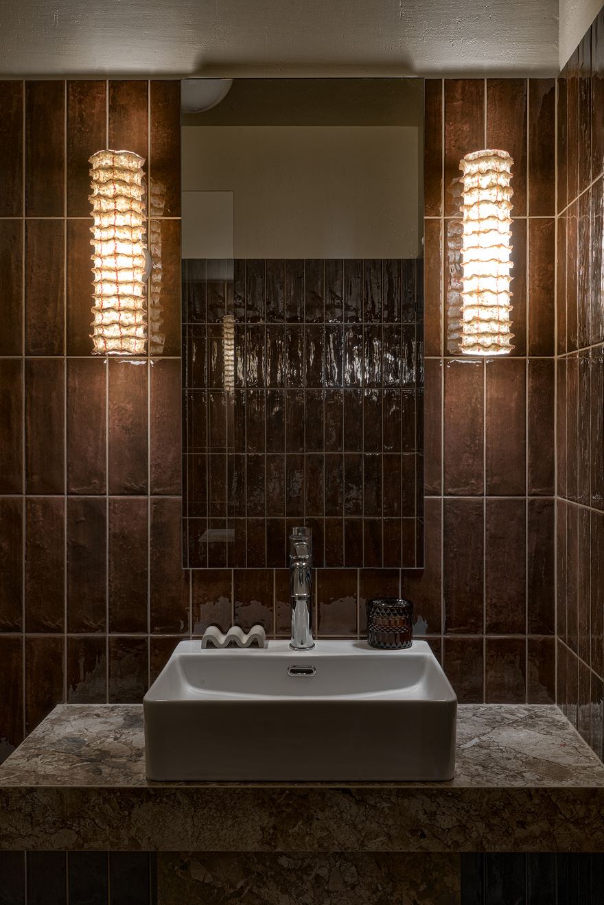 材质的选择与组合,是 “微奢” 风格的质感支撑。案例中融合了瓷砖、木材、金属、织物等多种材质,实现了复古韵味与现代质感的碰撞。瓷砖的复古与现代融合:厨房与卫生间的瓷砖,既有复古的花纹与色泽,又具备现代瓷砖的耐用性。厨房的深色瓷砖,搭配现代感的厨具,复古中透着利落;卫生间的棕色瓷砖,在灯光下泛着温润光泽,营造出复古浴室的奢华氛围;木材的温润调和:木质元素的加入,为空间增添了温暖与自然感。餐厅的木质餐桌,以其天然纹理和温润触感,中和了深棕色调的厚重,让用餐区域更显温馨;织物的柔软烘托:沙发的绒面材质、窗帘的亚麻质感,不同织物通过柔软的触感和丰富的肌理,为空间带来了舒适与精致的体验,让 “微奢” 不局限于视觉,更延伸到触觉层面。