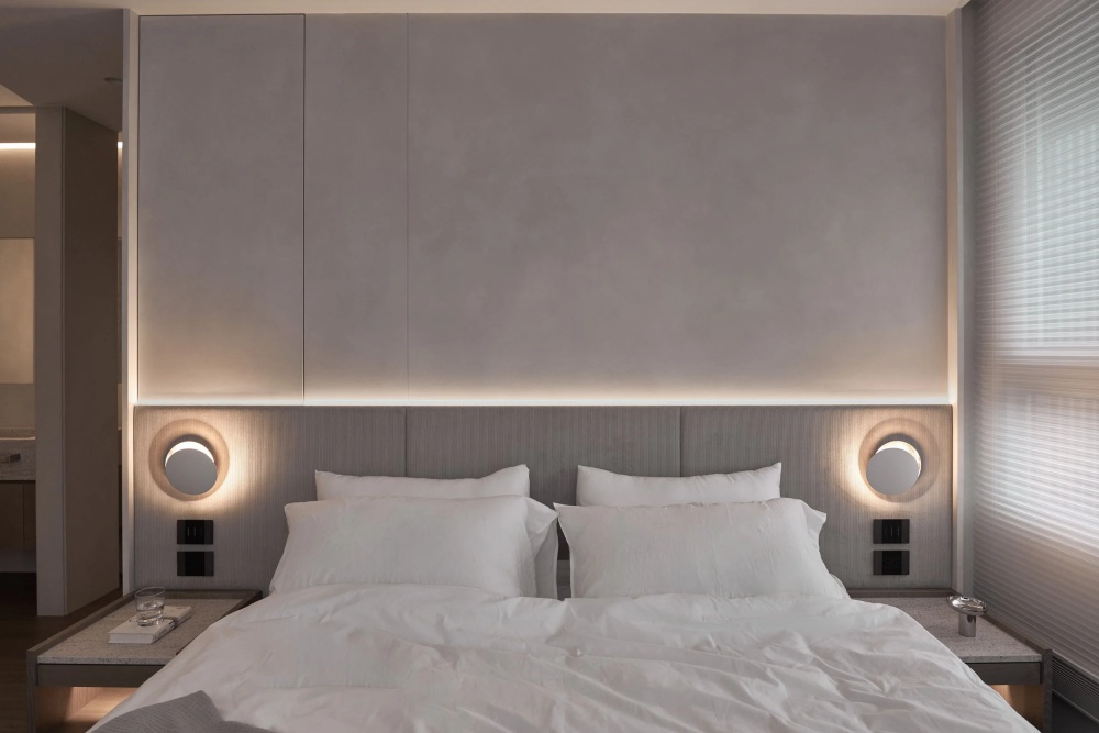 人工光的层次与氛围:人工照明根据不同空间的功能与氛围需求,进行了精心的层次布局。客厅的主灯提供了整体照明,而隐藏的灯带与壁灯则营造出局部的温馨氛围;卧室的床头灯,光线柔和,既满足了夜间阅读等实用需求,又烘托出静谧的睡眠环境,让光影成为空间情感的表达者。