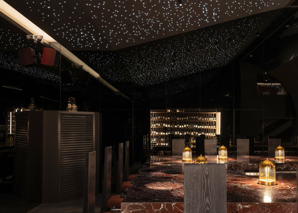 当都市的霓虹被隔绝在外,一处以 “星空” 为叙事核心的酒吧空间,正以暗调奢华的设计语言,重新定义着高端夜生活的体验逻辑。这个隐匿于城市核心区的场所,通过星空顶的光影魔法、材质的冷暖碰撞与空间的层次叙事,将 “微醺” 从味觉体验升华为全感官的沉浸旅程,成为当代酒吧设计中 “氛围先行、体验至上” 的典范。
