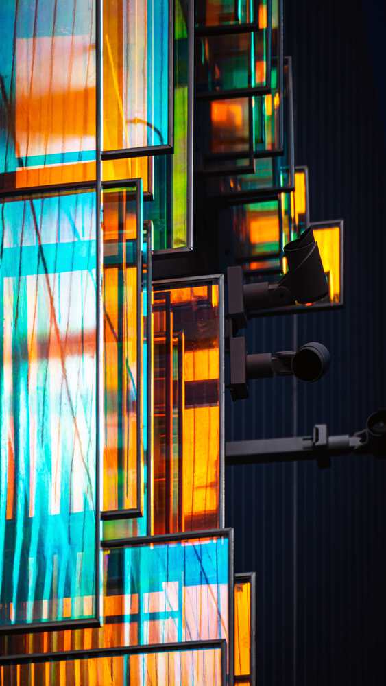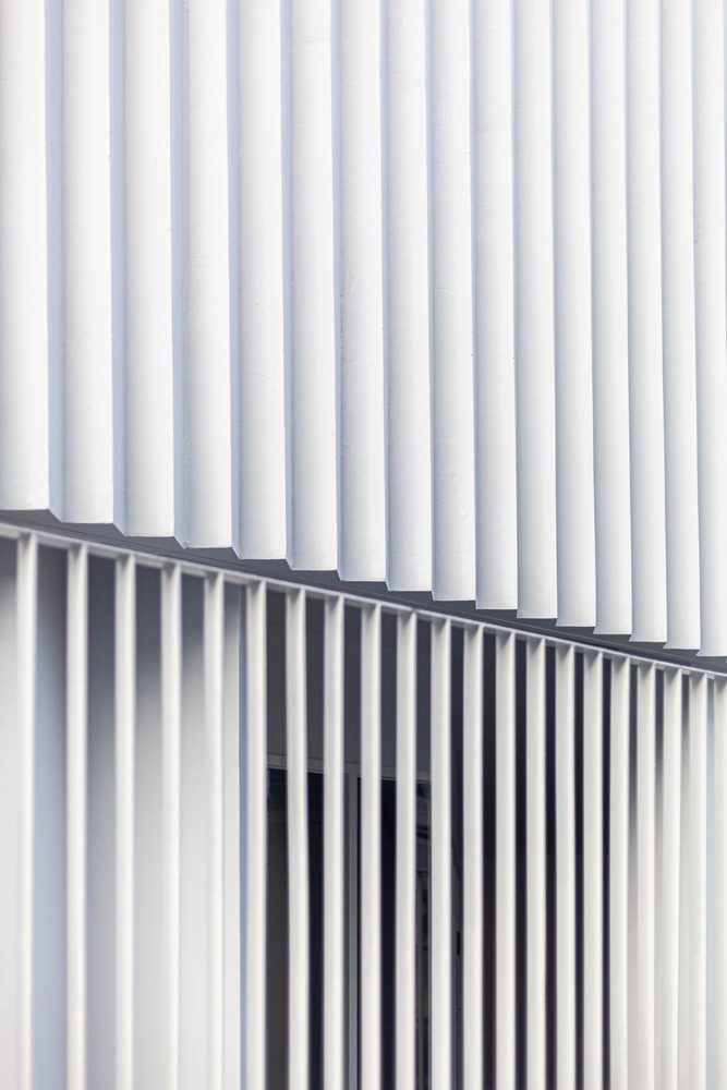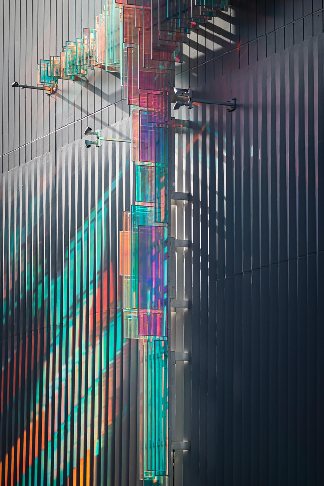受这一盟约的启发,正面外墙采用二色丙烯酸树脂制作了盟约十字架。它在阳光的折射和反射下,变幻出动态的色彩交织。不同深度的鳍抽象地勾勒出十字架上耶稣转瞬即逝的轮廓。当阳光沐浴外墙时,十字架焕发出勃勃生机,体现了欢乐的盟约。色彩的交织随着光线和天空条件的变化而变化,在褶皱的白色外墙上投射出美丽的色彩。在多云的天空下,它巧妙地展现出细腻的色调,在阳光的照射下,又鲜明地反射出明亮的色调,为外墙注入了生命力。