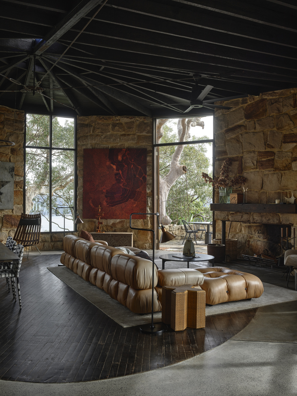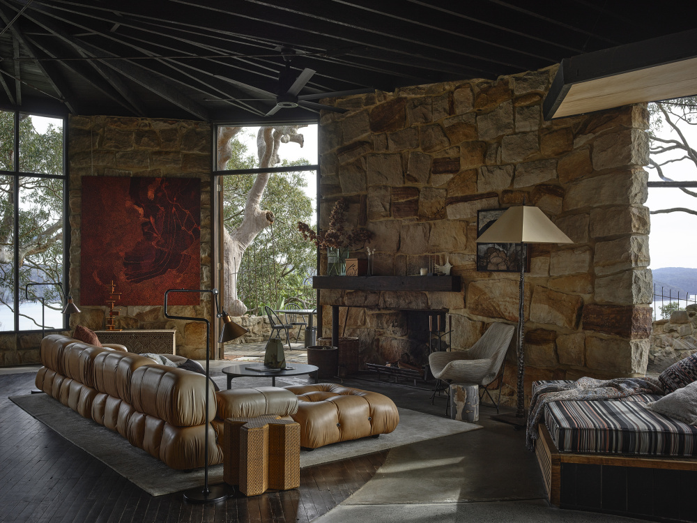 在北海岸当地居民口中,巴比伦住宅曾是名副其实的“城堡”。它扎根于山脊悬崖之上,以厚重的霍克斯伯里砂岩为骨,无论室内外都散发着岁月沉淀的古老气息。20世纪60年代前夕建成之初,这里便是一片独特的波西米亚秘境——百余级台阶之上,是无尽音乐与狂欢派对的热闹,而窗外,便是海洋、丛林与岩石悬崖交织的原始静谧,两种气质在空间中形成奇妙的共生。原作的“魔力”藏在每一处细节里:建筑摒弃了刻板的直角,每一道曲线都暗藏奇趣;对自然的由衷敬畏,让建筑与山体、植被形成默契的对话。这种魔力难以用语言精准描述,却能让踏入空间的人真切感知——那是历史的温度、自然的气息与人文的活力交融而成的独特场域,也是斯彭斯在翻新中始终坚守的核心。
