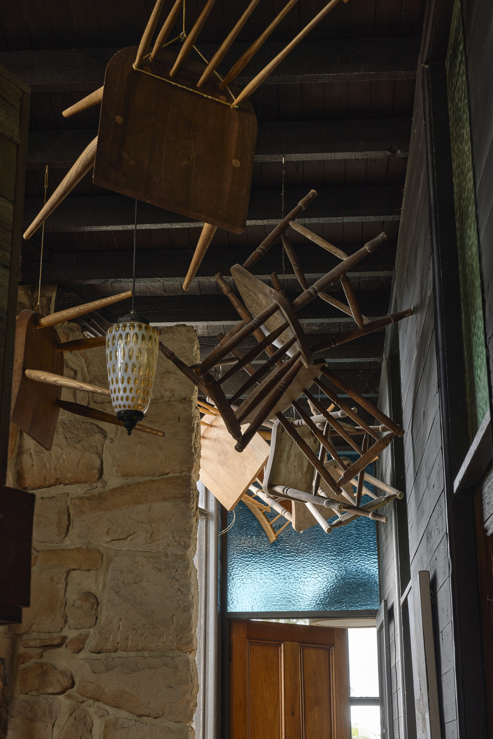 戏剧感是巴比伦住宅刻在骨子里的特质,它天生为娱乐而生。早年间,这里便因盛大的派对闻名,翻新后,这份狂欢基因被完整保留:弹性十足的跳舞地板依旧能承载热闹的舞步,可随时变身的隐藏舞台,让即兴表演成为日常可能,波西米亚式的自由氛围在空间中从未消散。莱达利用自身人脉,为住宅注入了诸多精妙又充满趣味的设计,让斯彭斯笑称“巴比伦其实是个主题公园”。实用层面,悬崖缆车解决了人与物资的运输难题,反向通行的溜索则为日常增添了几分冒险趣味;创意层面,厨房的闸式窗户灵活实用,东翼可水平旋转的墙体更是点睛之笔——夏季或待客时墙体收起,瞬间变身独特的悬挑元素,让室内空间与户外景致无缝衔接。这些设计既满足了现代生活需求,又为空间注入了源源不断的奇趣活力。