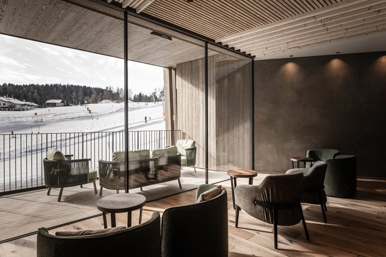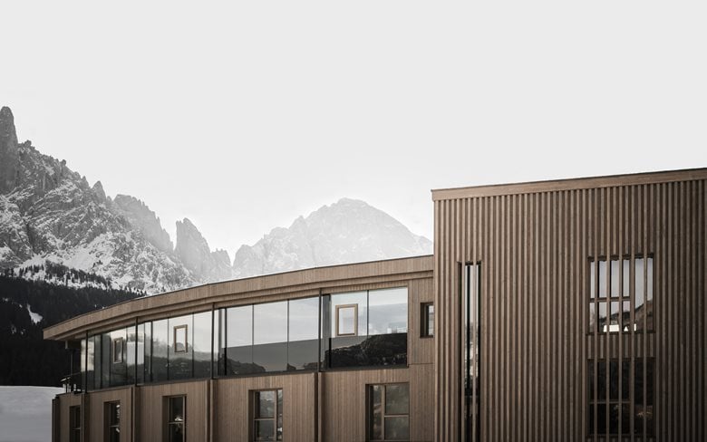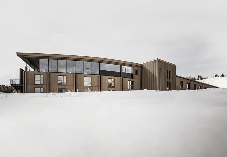 w该度假酒店设计在圣克里斯蒂娜(St. Christina)蒙 tepana 高原(Monte Pana)上,是新增了一组建筑结构。这组建筑以克制的建筑风格与对景观的敏锐感知,融入了多洛米蒂山脉(Dolomiten)的景致之中。此次扩建并非以 “对比” 为目的,而是在材质、尺度与氛围上对原有酒店进行 “延续”。
