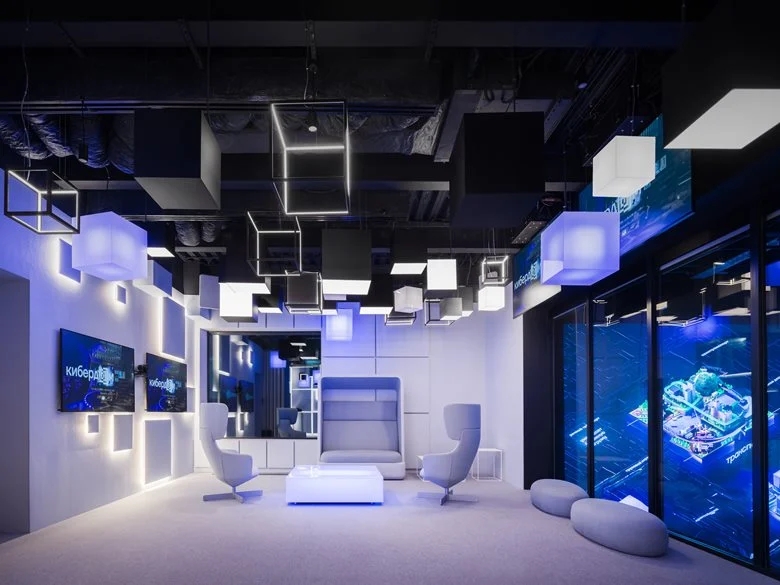 网络王国(Cyberdom)是一个多功能活动办公及展厅空间设计,专门用于信息技术产业和数字安全。这个充满活力的场所旨在与广泛的目标受众进行最有效的多形式互动。信息安全和信息技术专家可以分享他们的经验,谈论他们的专业知识;商业机构可以寻找有效的数据安全解决方案,从商业安全的角度测试自己的产品;举行公开和非公开的专家会议,讨论行业发展的倡议。年轻人可以在智能平台上了解这一行业的秘密,在这里可以举办讲座、聚会、黑客马拉松和人力资源推介会。最后,每个人都可以提高自己的数字素养,深入了解当前和未来为人们服务的安全技术的充满活力和动态的环境。