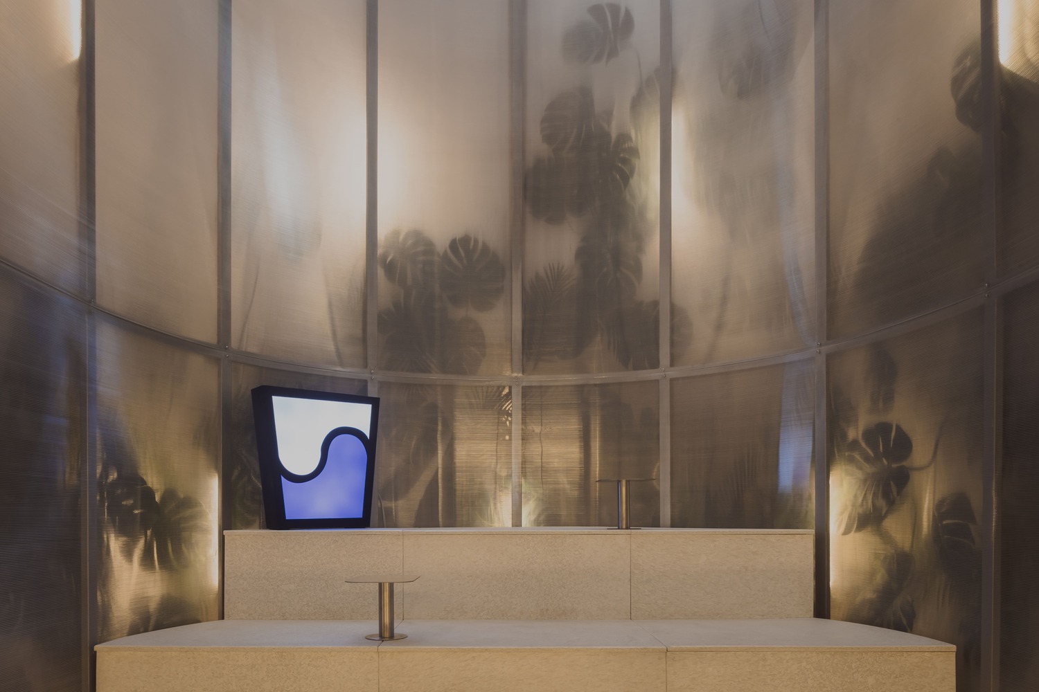 漫步于空间之中,惊喜的景致与维度不断呈现,从互动区域到私密角落,每一处都旨在引发惊叹。体验的终点是一个远离城市喧嚣的地方,你可以在极具沉浸感的环境中开始品尝饮品。就在天花板下方,艺术家露西亚・奥曼和巴勃罗・小林创作的雕塑艺术品随时间推移变换着色彩与几何形态。它不断变化,为每一次到访都留下独特印记。