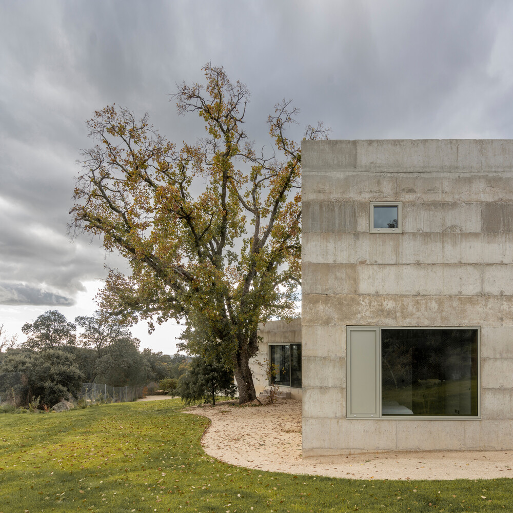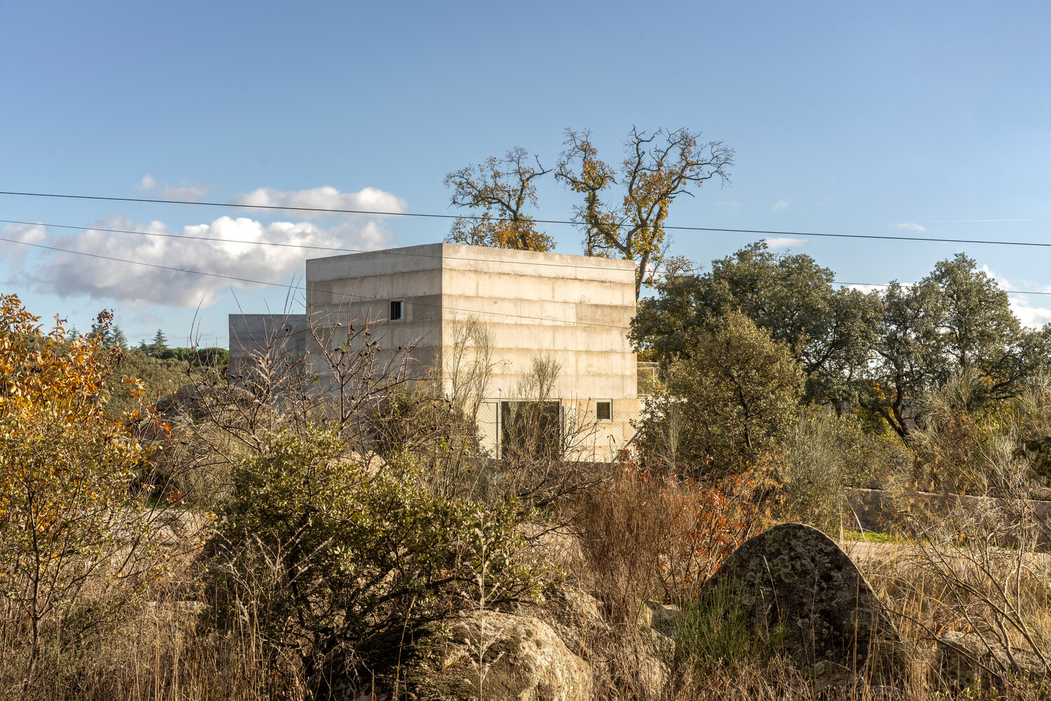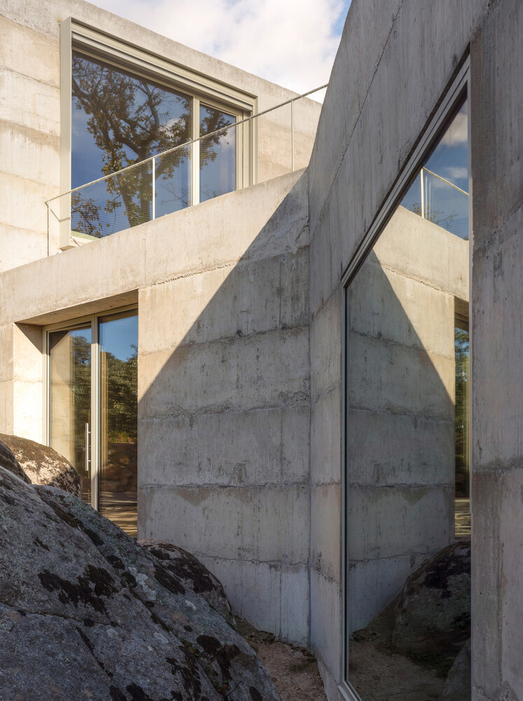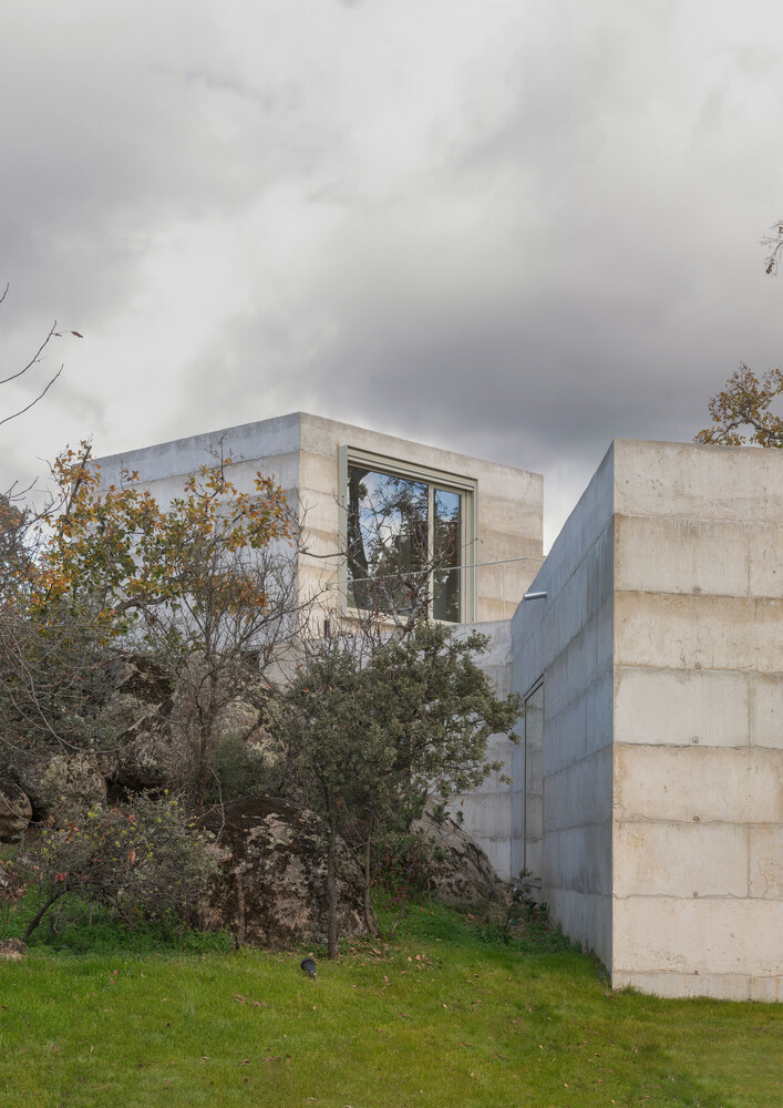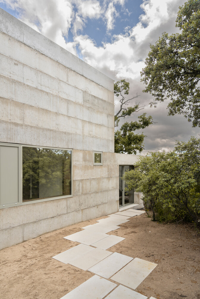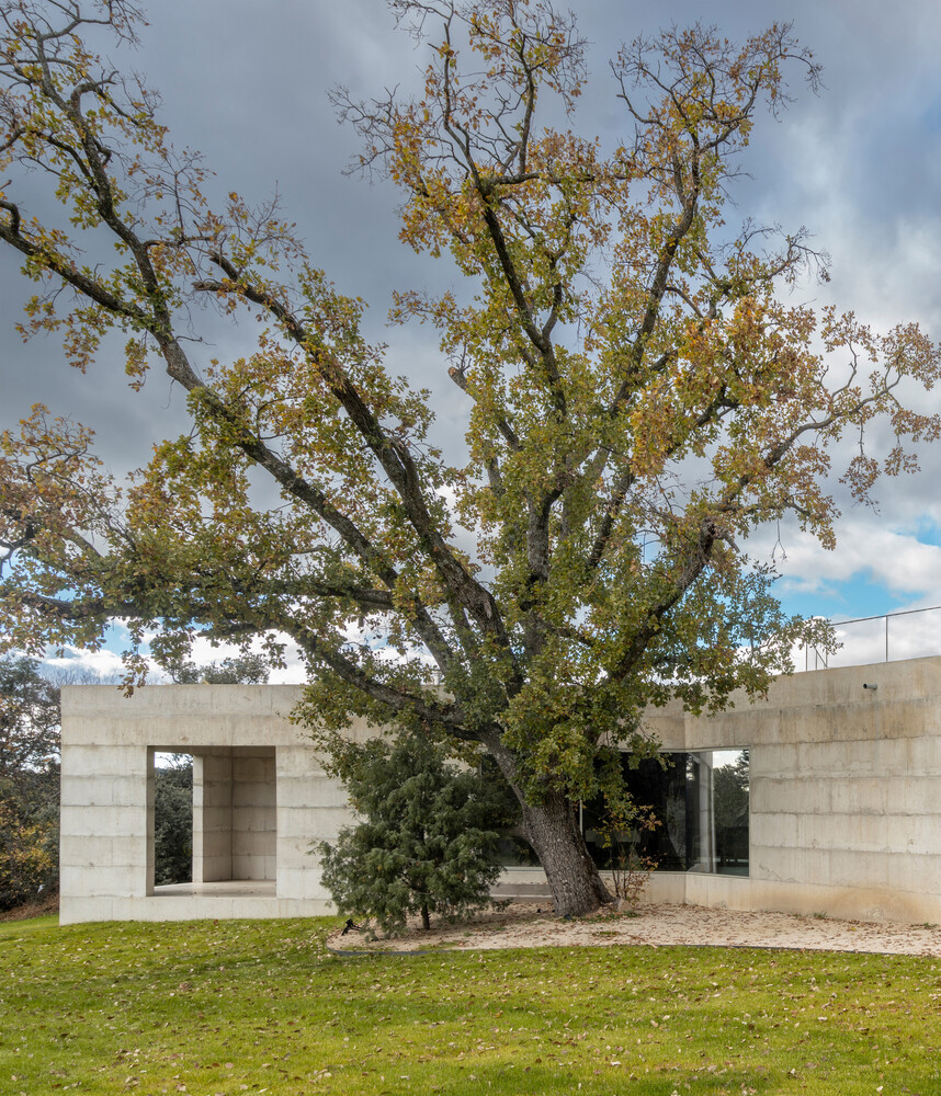 住宅坐落在岩石地形上,其特点是平缓的地形和百年橡树的壮观存在,周围是生长在大型花岗岩巨石中的霍尔姆橡树和软木橡树。在所有这些石头和植物元素中,从Coderch的Ugalde住宅中学习,房子设法找到了一个X形的布局,在崎岖的景观中容纳了项目,同时从内部构建了这些特征的视野。