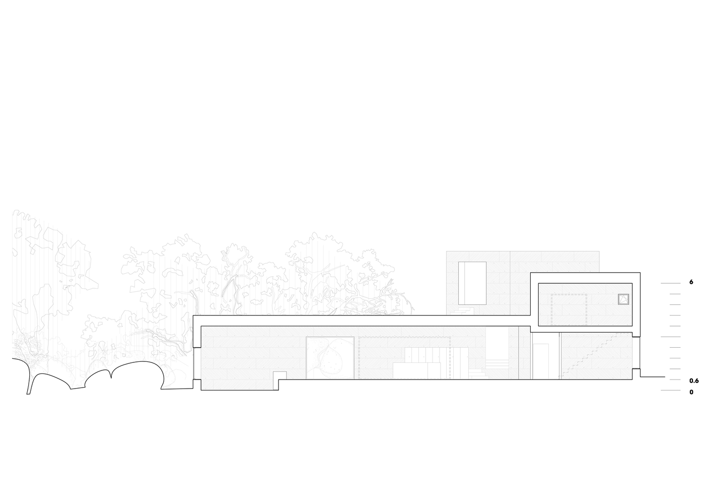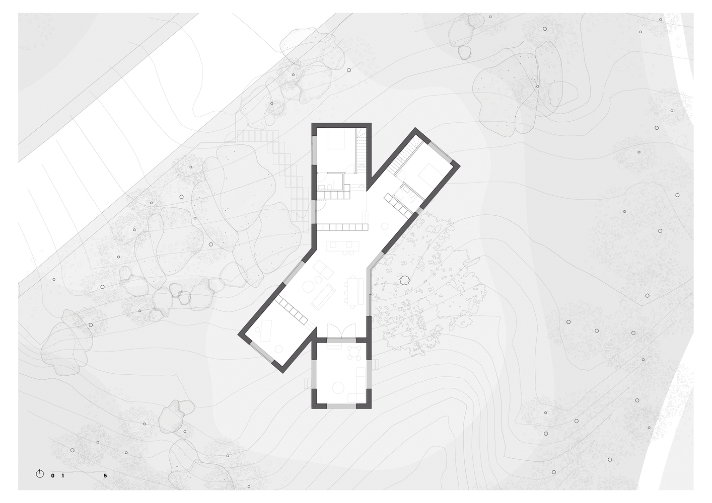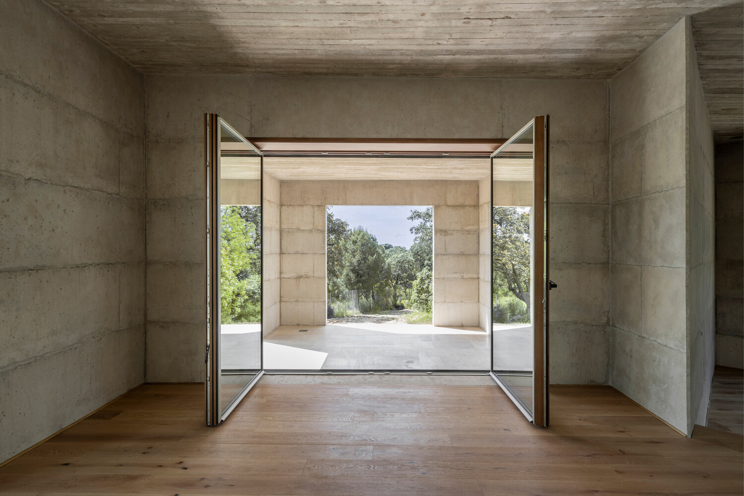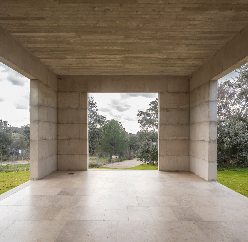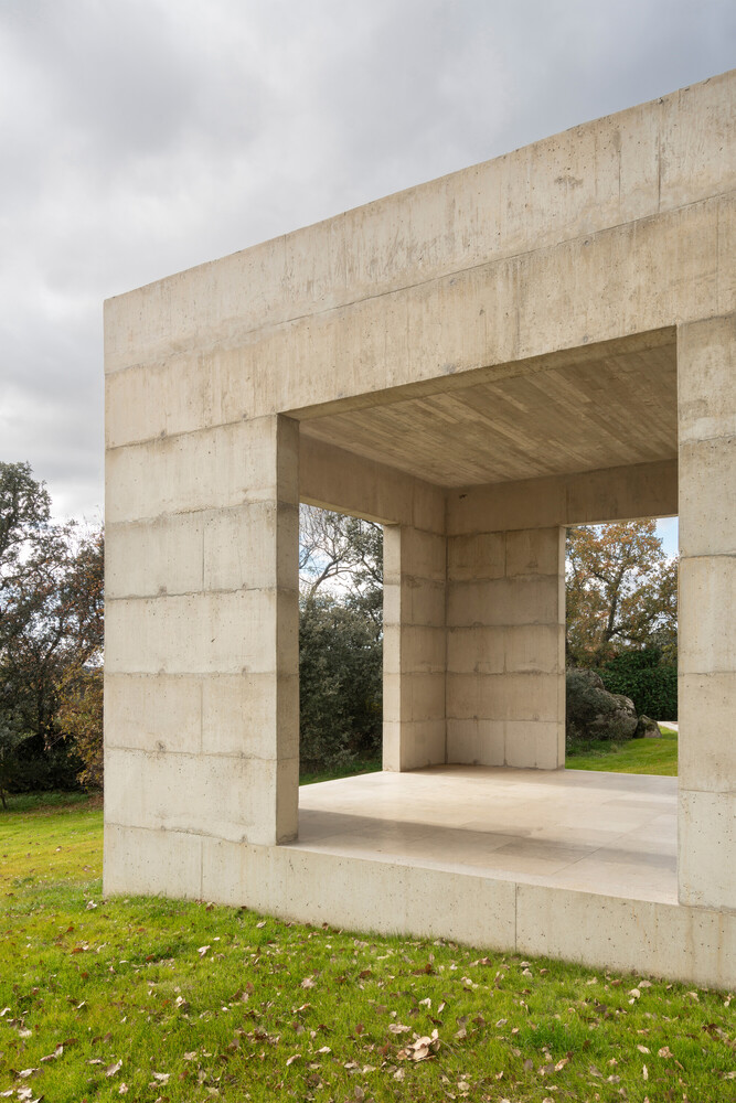 住宅坐落在岩石地形上,其特点是平缓的地形和百年橡树的壮观存在,周围是生长在大型花岗岩巨石中的霍尔姆橡树和软木橡树。在所有这些石头和植物元素中,从Coderch的Ugalde住宅中学习,房子设法找到了一个X形的布局,在崎岖的景观中容纳了项目,同时从内部构建了这些特征的视野。