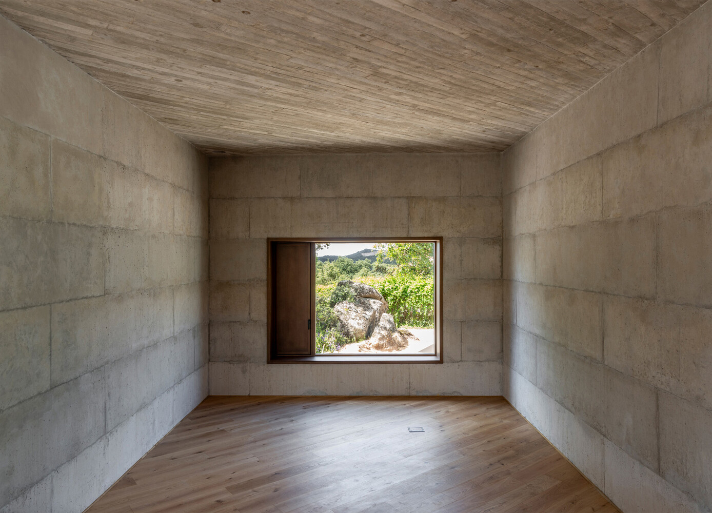 X混凝土度假别墅设计源于美丽的景观和居住意愿之间的冲突。这种冲突面临着一种坚定的意图,即构建景观的新元素,而不是“在”景观中。就像古老的堡垒或葡萄牙孟山都公司的房子一样,这座房子渴望尽可能彻底地融入周围的环境。