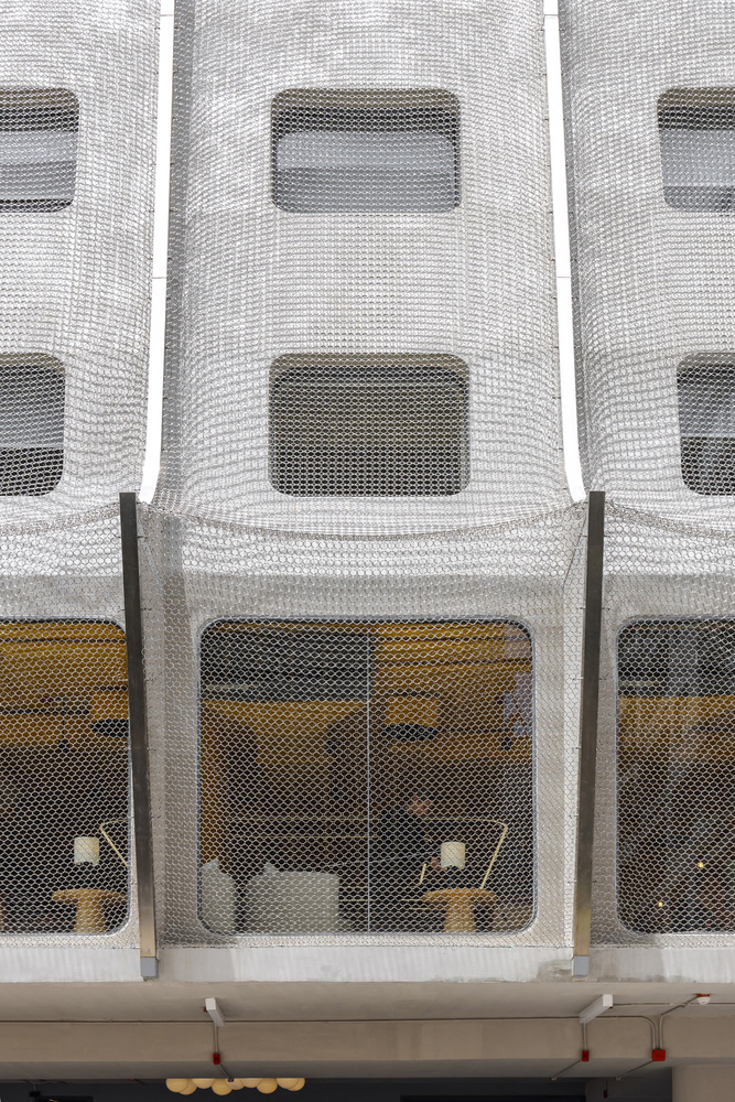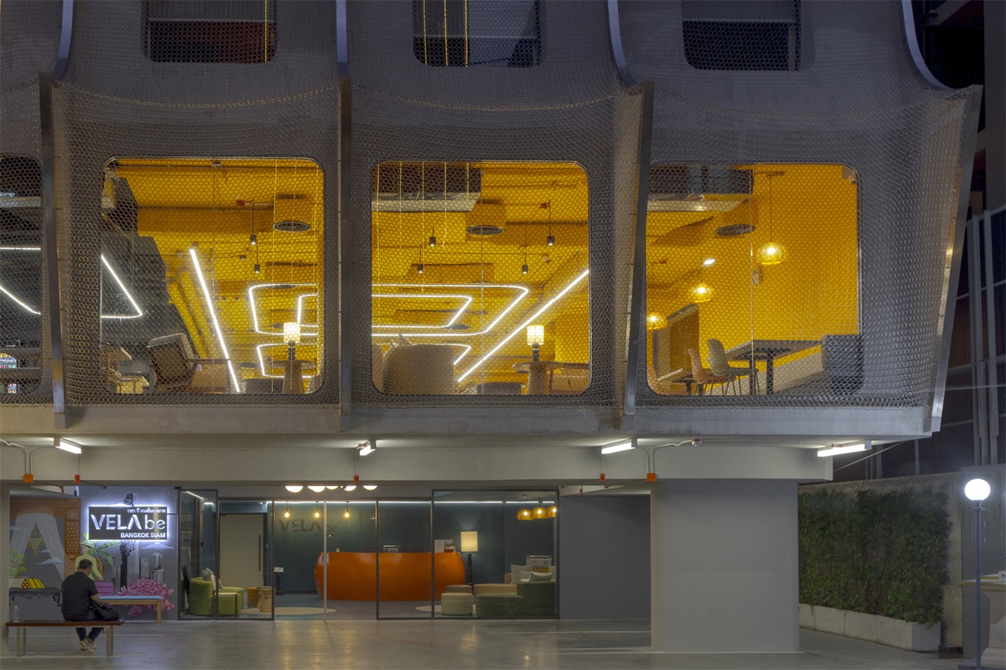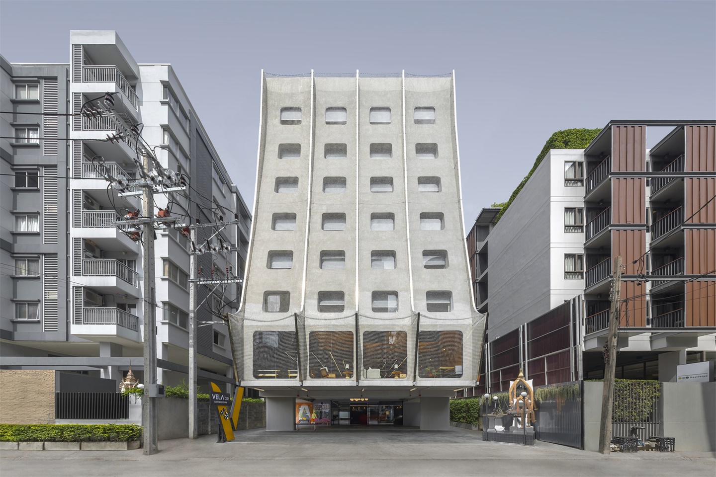 一家精品酒店设计近期在曼谷暹罗广场充满活力的中心区域开业,该街区以其丰富的文化和热闹的氛围而闻名。酒店醒目的外立面将泰国传统建筑元素与现代风格融为一体。其中一个核心元素是 “Pun-Lom”—— 一种常见于泰国古典住宅中的精致雕刻,是当地文化遗产的象征。建筑外部还装饰有闪亮的不锈钢链,它们代表着传统床上使用的蚊帐,在过去与现在之间架起了一座对话的桥梁。