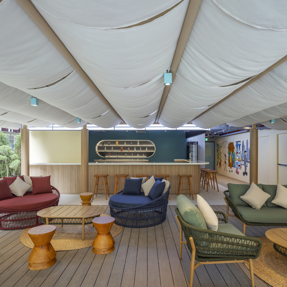 进入酒店后,宾客会发现一个充满活力与生机的室内空间。这里通过源自当地文化的色彩搭配,彰显着泰国的精髓。这种对泰国文化的致敬在公共空间中体现得尤为明显,鲜艳的色彩与华丽的图案共同营造出一个既温馨又富有活力的环境,鼓励人们进行社交互动。