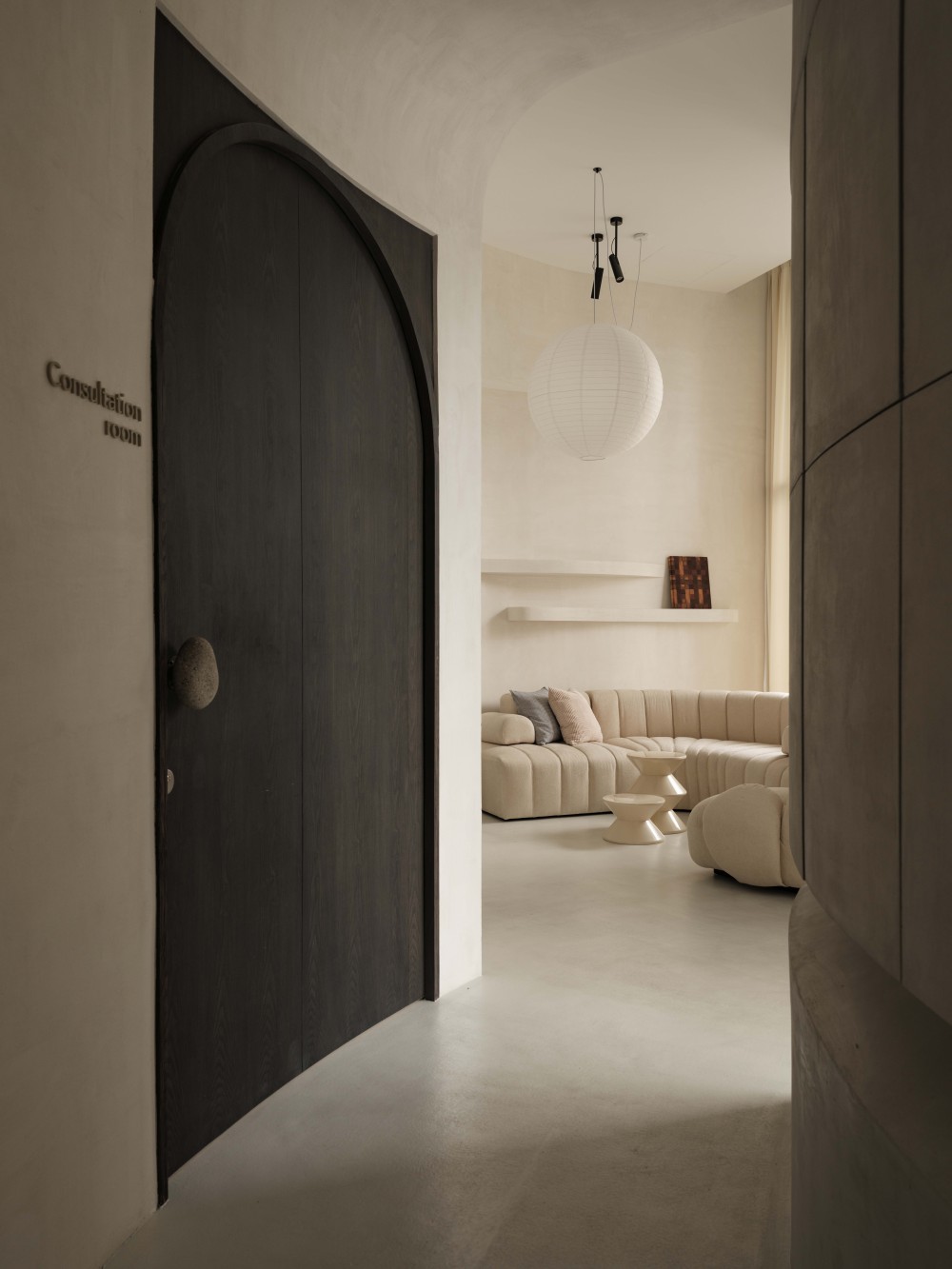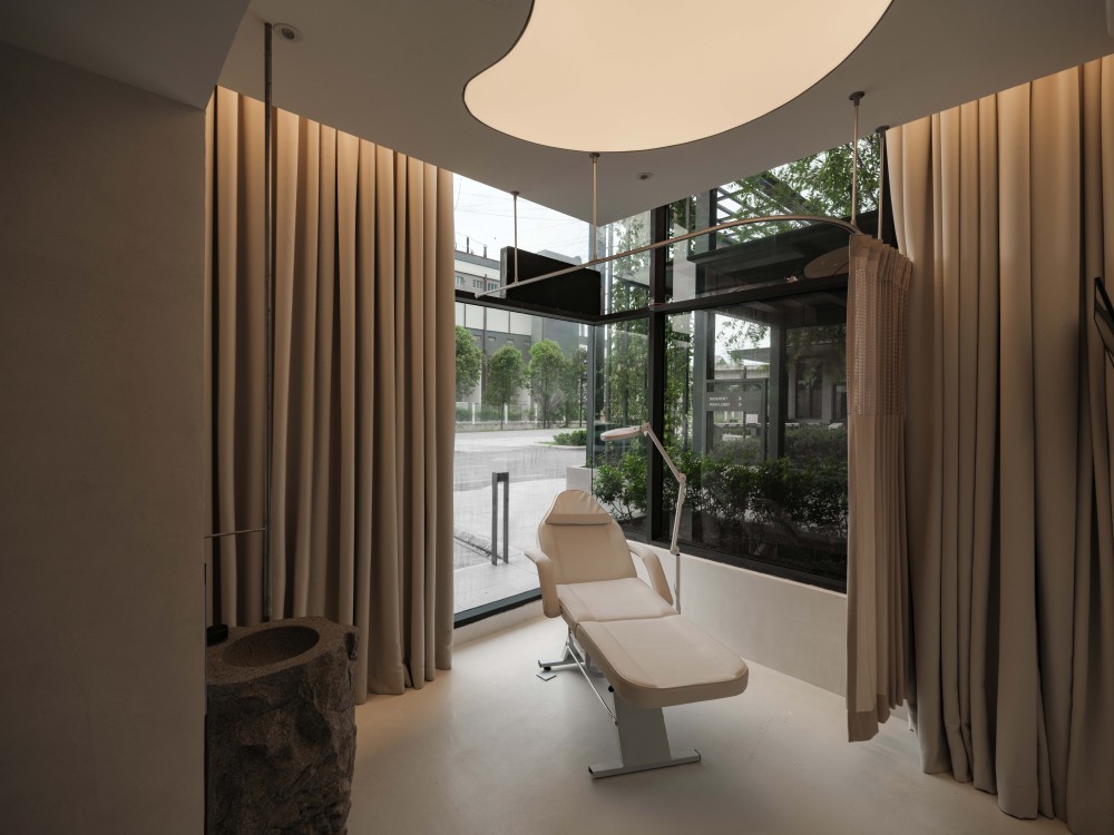 诊室以简洁线条和高效利用为核心,搭配极简细节与雕塑感家具,既满足医疗功能性,又营造现代宁静的美感;