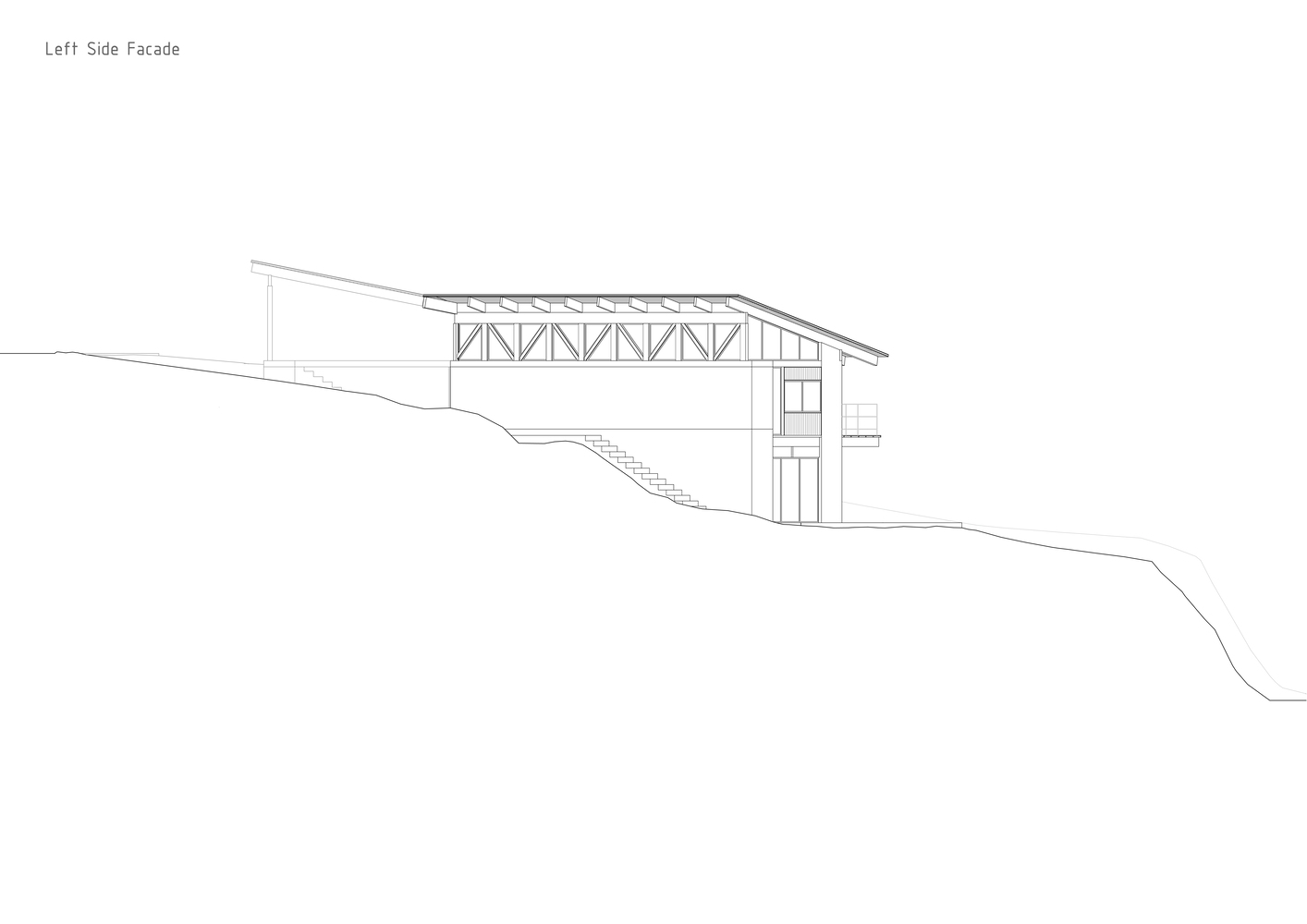 一个独立的建筑体量容纳了陶瓷工作室,有意将其与住宅主体分开,以区分创作活动和家庭生活。它在不改变地形的情况下建在一个斜坡上,通过石板路与主体建筑相连,这些石板路连接着停车场、楼梯、储物区和菜园。景观设计被视为当地生态系统的延伸:原生物种、少量草坪以及与客厅相连的菜园。通过渗透、分离和生物处理系统对水资源进行管理,并辅以太阳能热系统和光伏发电系统。