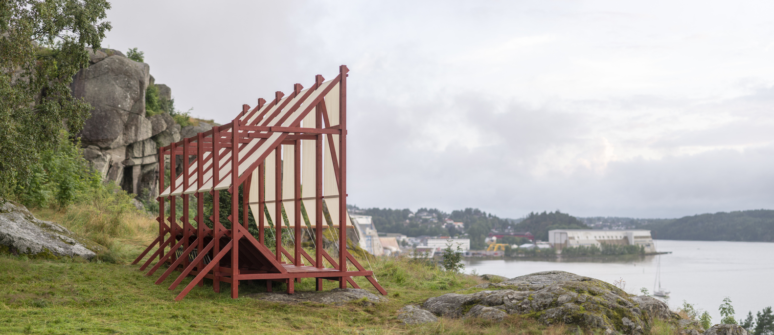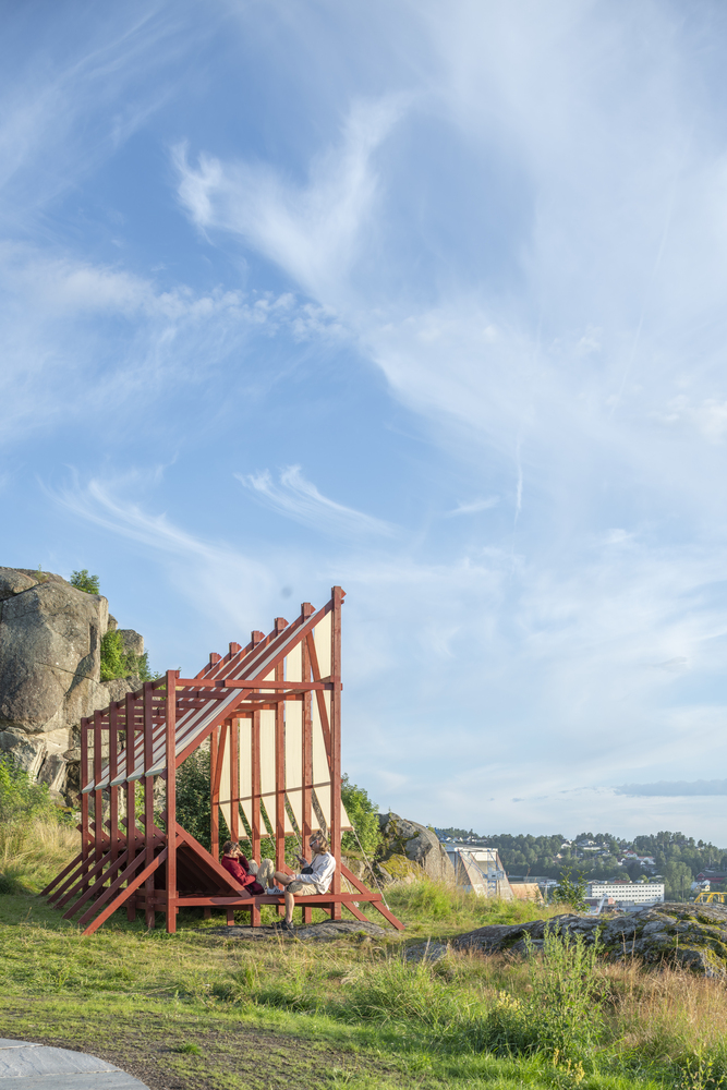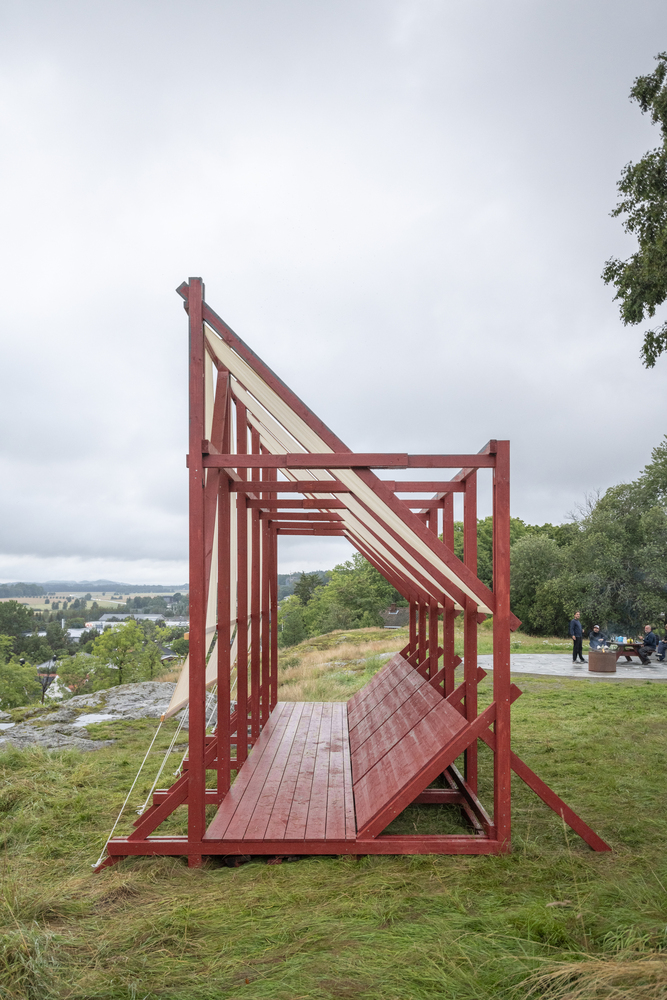Erazo Puglieseyi艺术装置设计并建造的建筑Vessel 是通过 Færderbiennalen(舞蹈与建筑节)国际公开征集活动选出的第二个项目(2/2)。Vessel 是一个临时建筑装置,位于挪威奥斯陆南部滕斯贝格中心的历史遗址 Slottsfjellet 上。作为Færderbiennalen计划的一部分,该装置于7月27日至8月10日期间展出,并应观众要求延长至10月初。该装置由木头和农用织物制成,参考了几个世纪以来建造的船只–这些船只是人类探索和拓展地平线以外地区的工具,也是代代相传和不同民族之间传承手工艺知识的工具。
