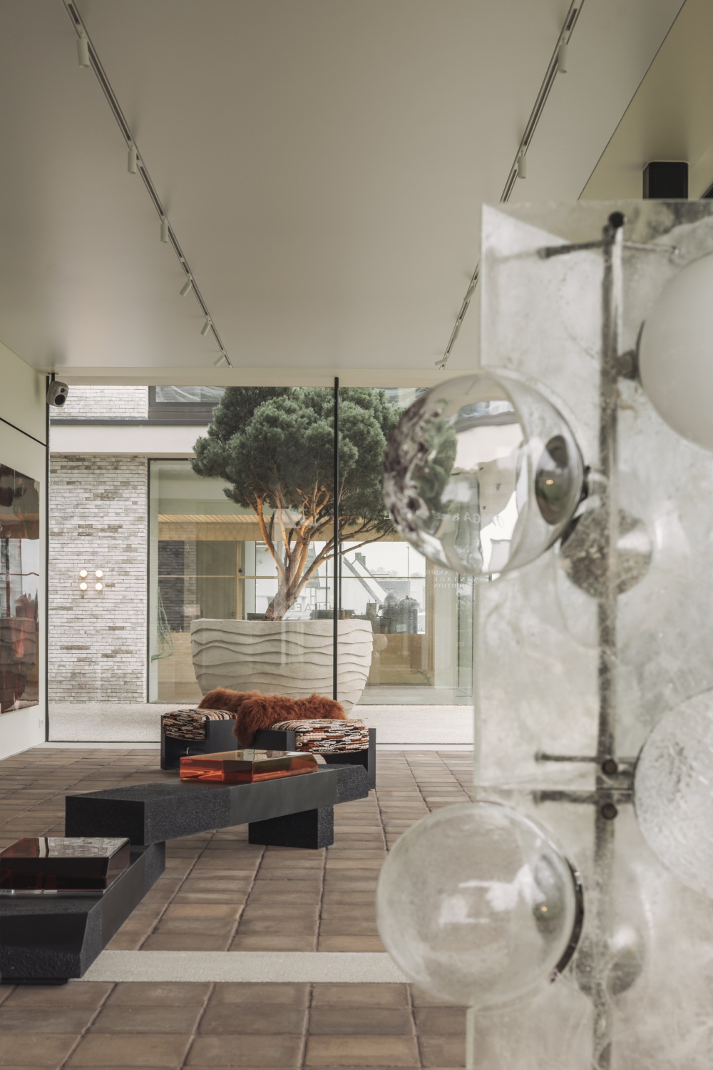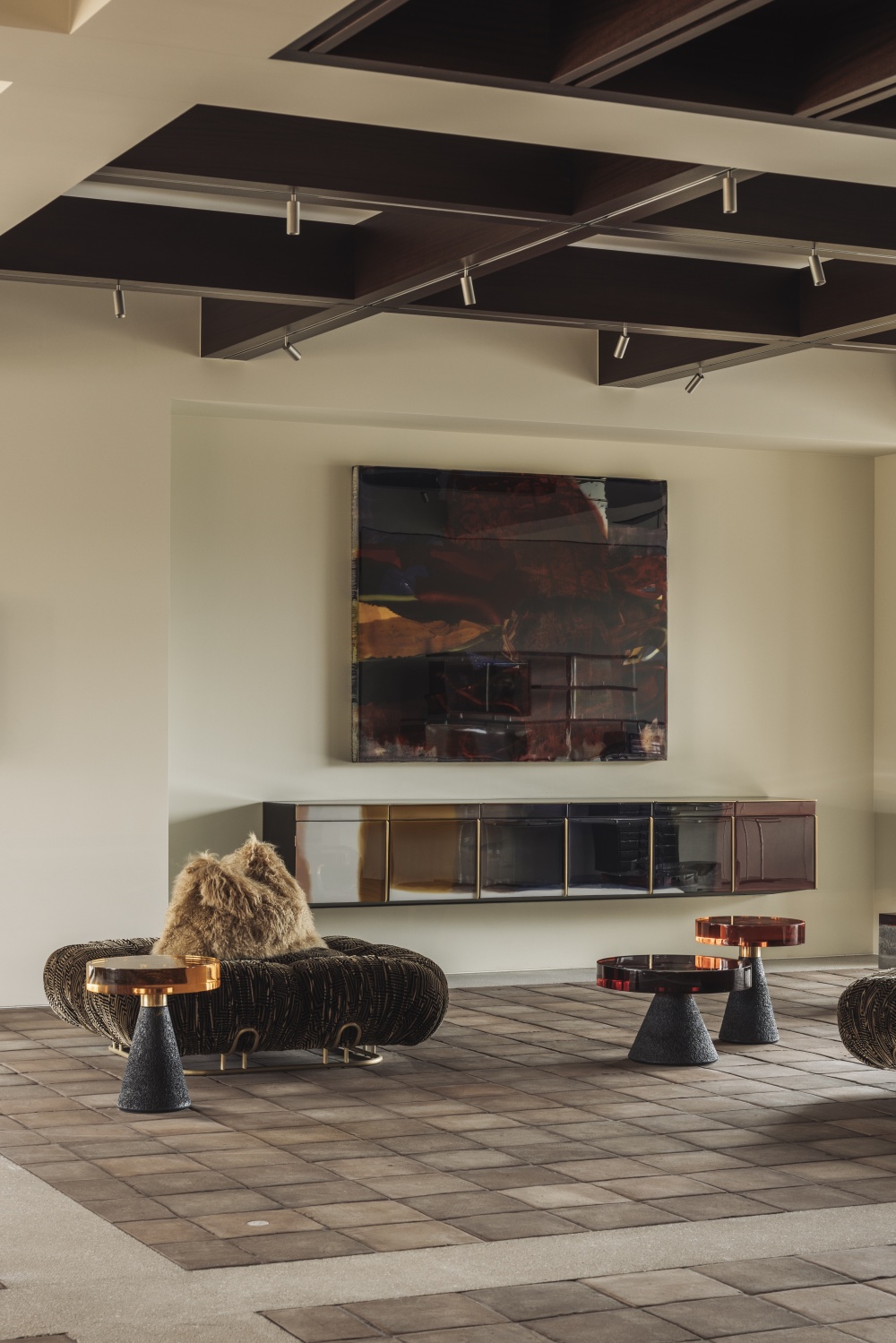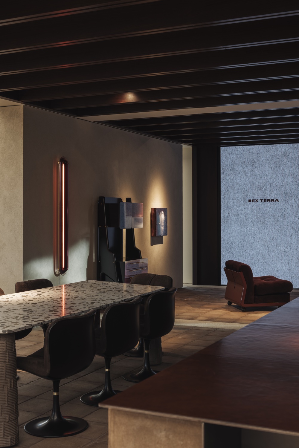 一年中大部分时间,Ex Terra 以高端设计商店的身份面向公众,专注于优质户外相关设计产品的展示与销售。空间布局围绕 “产品体验” 展开,陶土色地面、萨佩莱木装饰与柔光天花板共同构成了 “自然、高端” 的展示背景,让户外家具、软装等产品能够在契合自身调性的环境中呈现,凸显产品的设计感与品质感。访客在挑选产品的过程中,不仅能直观感受产品的实用性与美观性,更能沉浸在 “当代静谧奢华” 的空间氛围中,获得 “购物即体验” 的愉悦感,这种将产品与空间深度融合的设计,让 Ex Terra 在众多高端商店中脱颖而出。