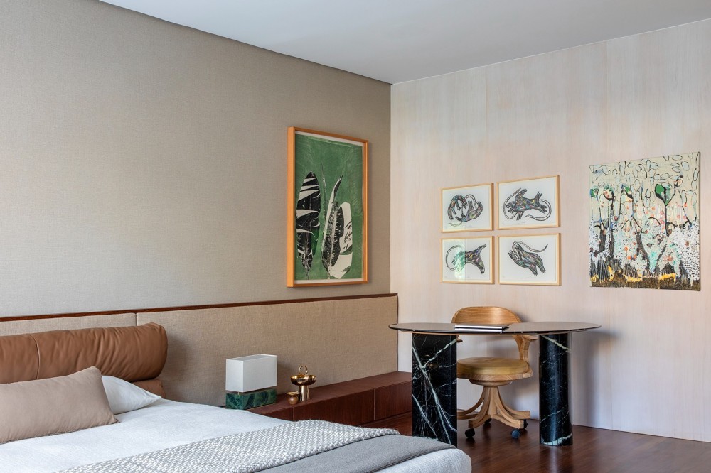 这套居所的设计,本质上是一场 “艺术与生活的和解”。它没有追求浮夸的形式,而是以 “材质的本真”“空间的流动”“艺术的融入” 为核心,构建出一处 “可居住的艺术空间”。在这里,艺术不再是遥不可及的奢侈品,而是日常的一部分;材质不再是冰冷的建材,而是有温度的叙事者。它证明了当代居所的设计可以超越 “风格的堆砌”,通过对材质、空间、艺术的深度理解,打造出既实用舒适,又充满艺术气息的生活容器 —— 这是一处 “在日常中生长的艺术居所”,让居住者在每一次转身、每一次休憩中,都能感受到设计的温度与艺术的魅力。