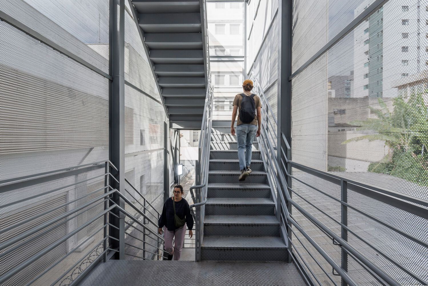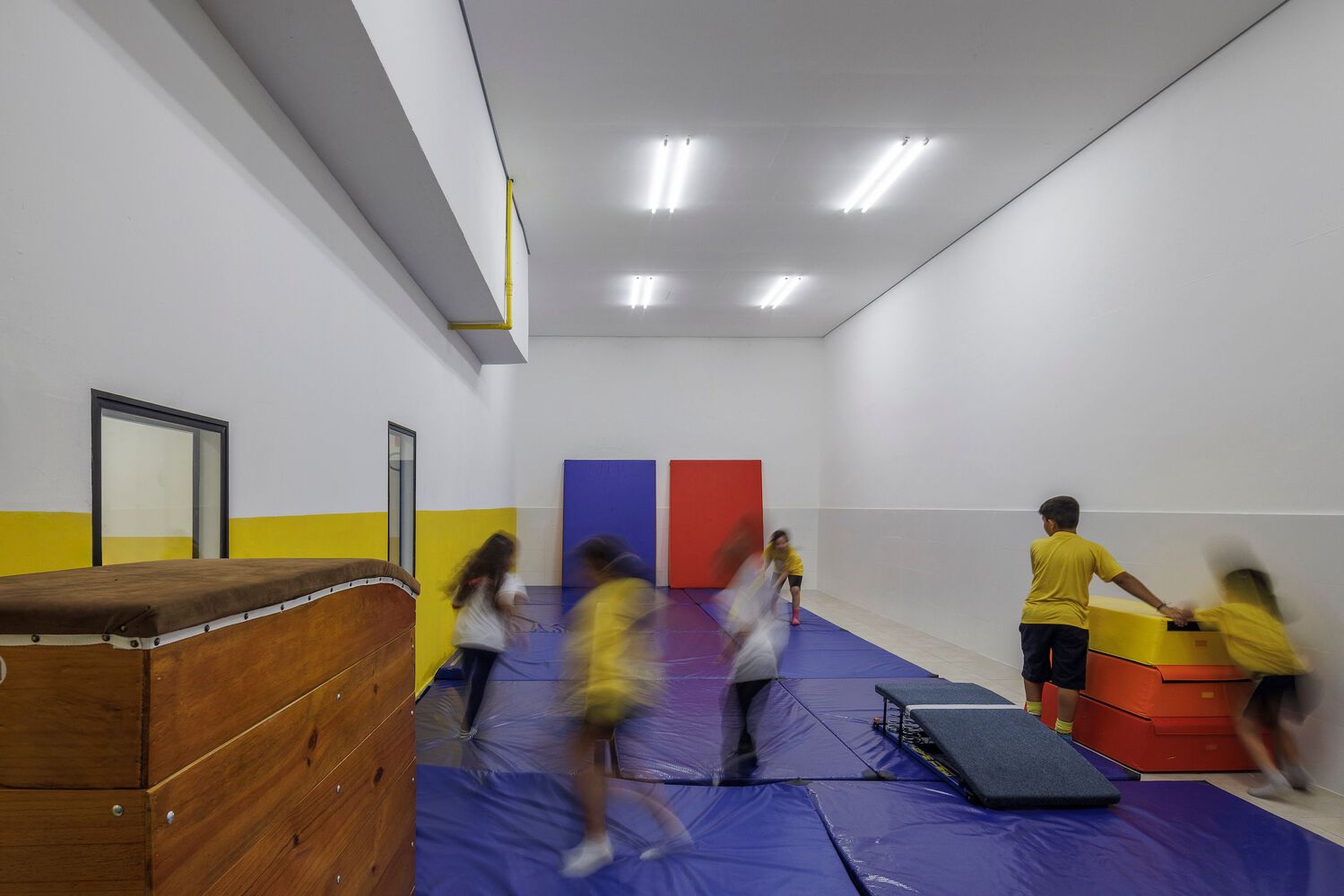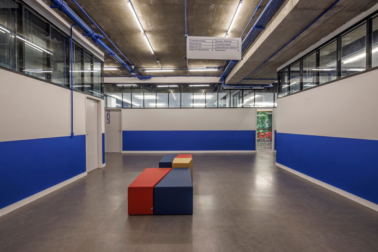礼堂内,塞尔吉奥・罗德里格斯(Sérgio Rodrigues)设计的标志性长排座椅被保留并修复。该空间还改善了通道,添加了色彩(新地毯和天花板涂料),带来了舒适的感觉和良好的声学效果。地下室的实验室和幼儿教室设计了不同尺寸的开口,促进了各环境之间的视觉和功能整合,同时不影响空间的流动性。地下室还设有一个为幼儿教育设计的室内运动场地,战略性地靠近教室,方便幼儿出入。