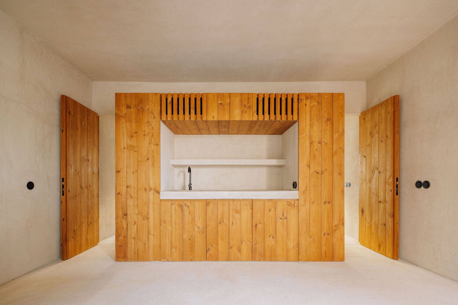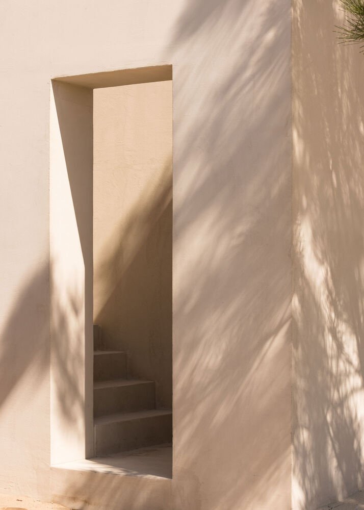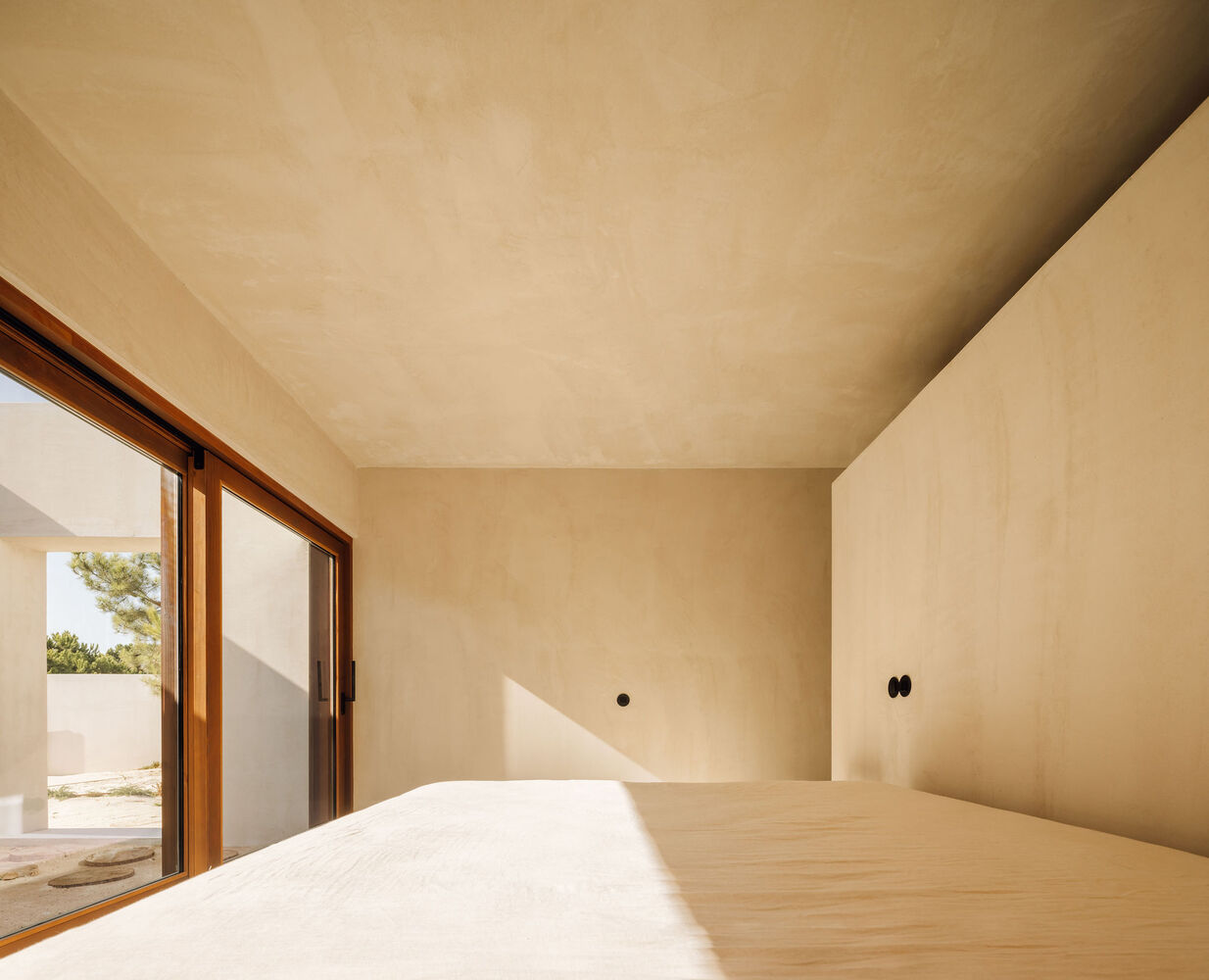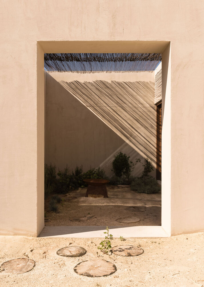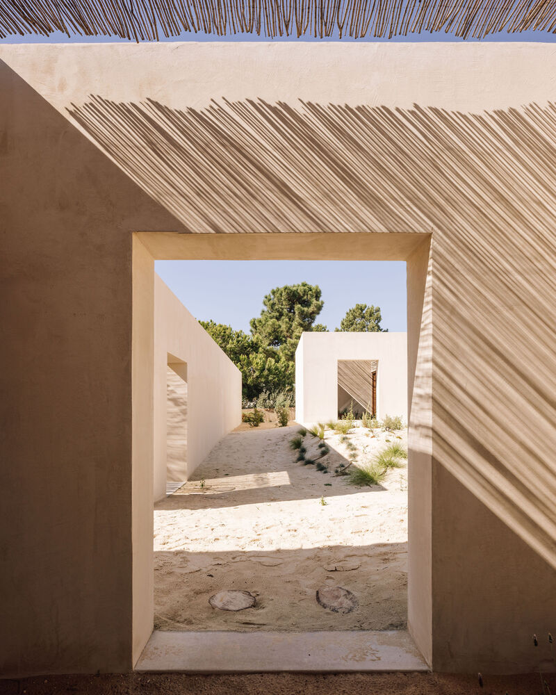 让人始终能感受到脚下沙滩的存在的民宿设计。沙丘在墙体之间被 “压缩”,将这片场地转化为一座可供居住度假的住宅。