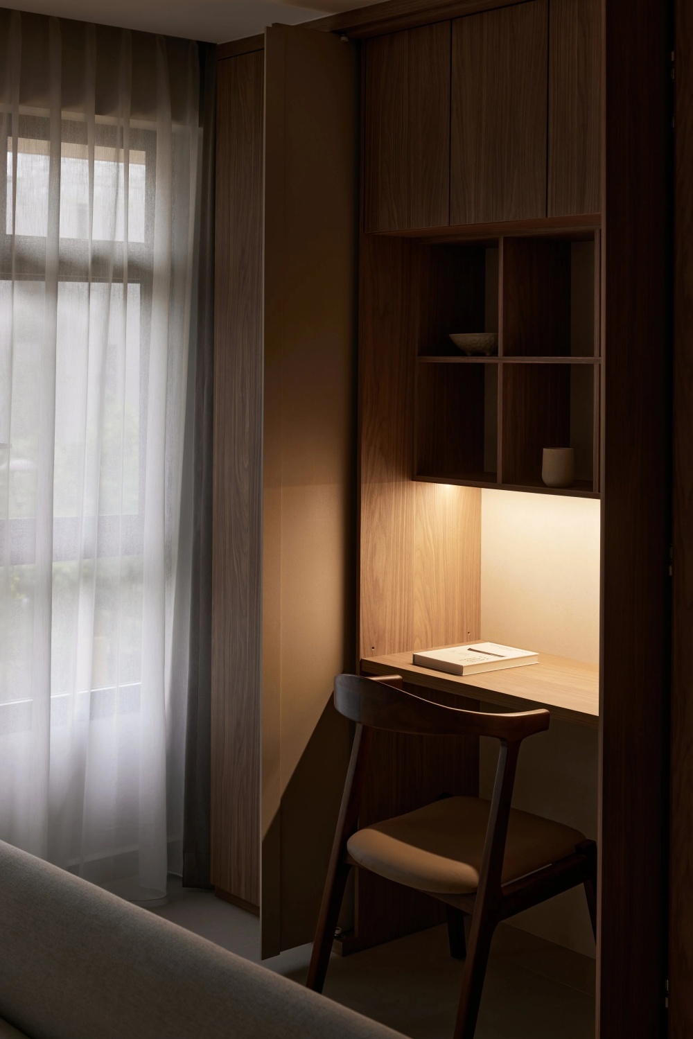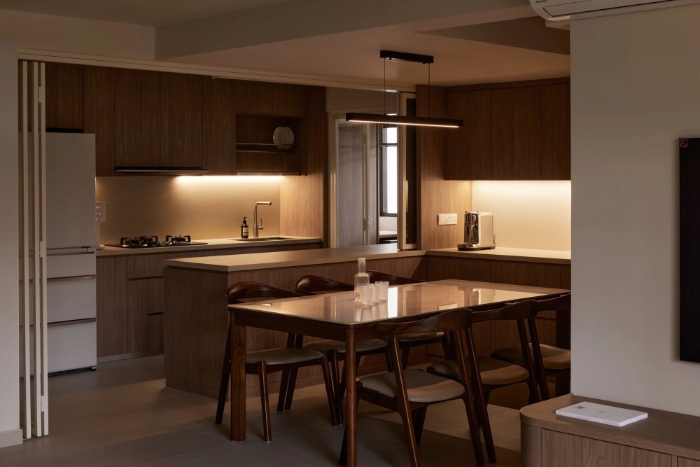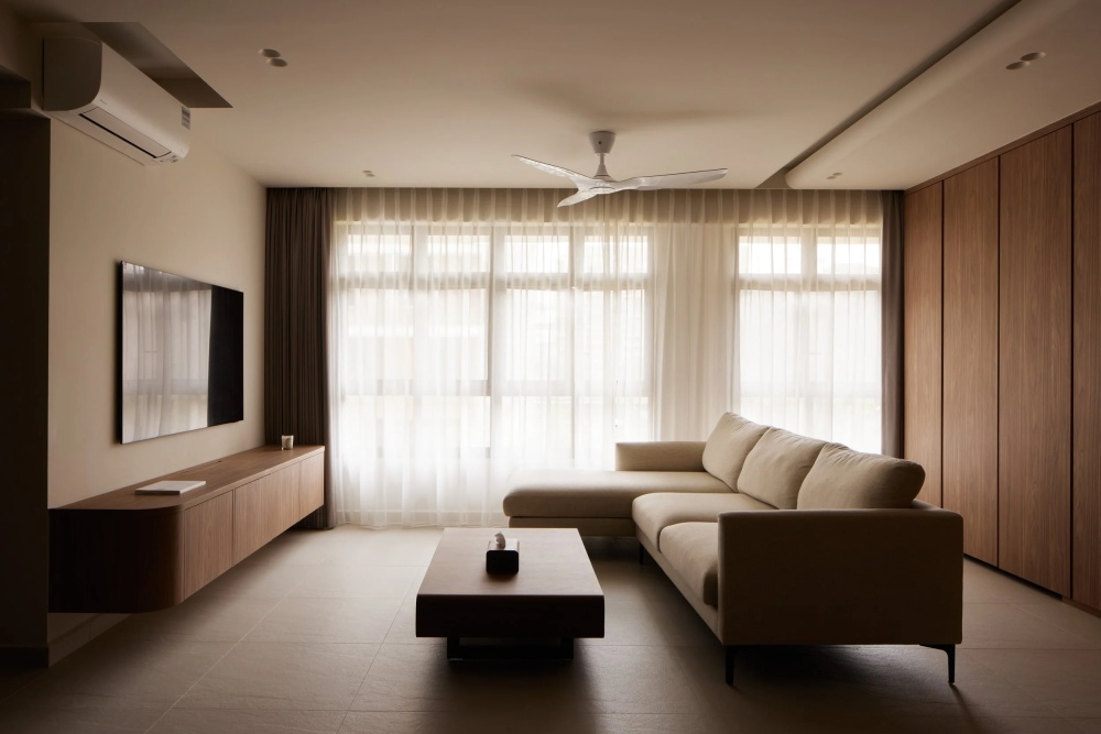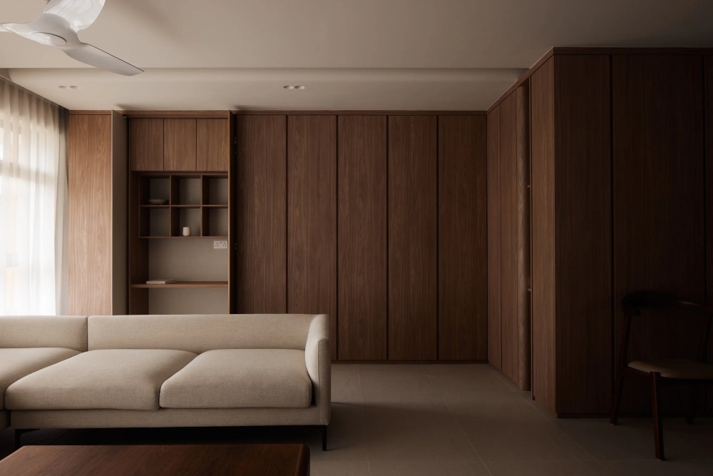 在新加坡郊区的住宅群落中,Hansel Studio 以 “有机极简主义” 为笔,为一对即将迎接首个孩子的年轻家庭,在 113㎡的五居室公寓里,勾勒出一处兼具 “育儿实用性” 与 “生活诗意” 的居所。这里没有浮夸的装饰,却以开放流畅的布局、温暖耐用的材质、刚柔并济的细节,将 “功能性”“宁静感” 与 “低调优雅” 熔于一炉,让家既成为应对幼儿日常的 “实用容器”,也是卸下疲惫的 “心灵避风港”。