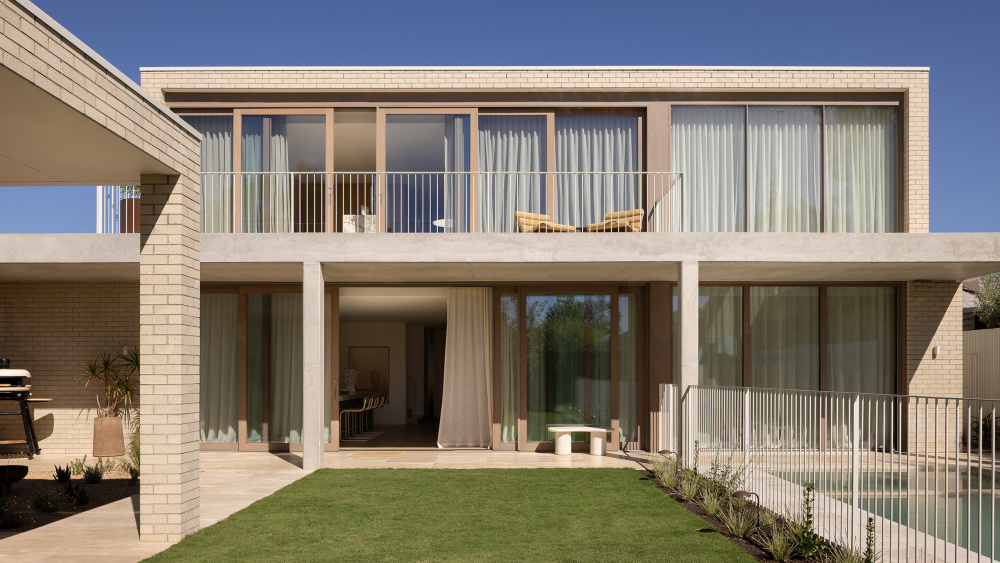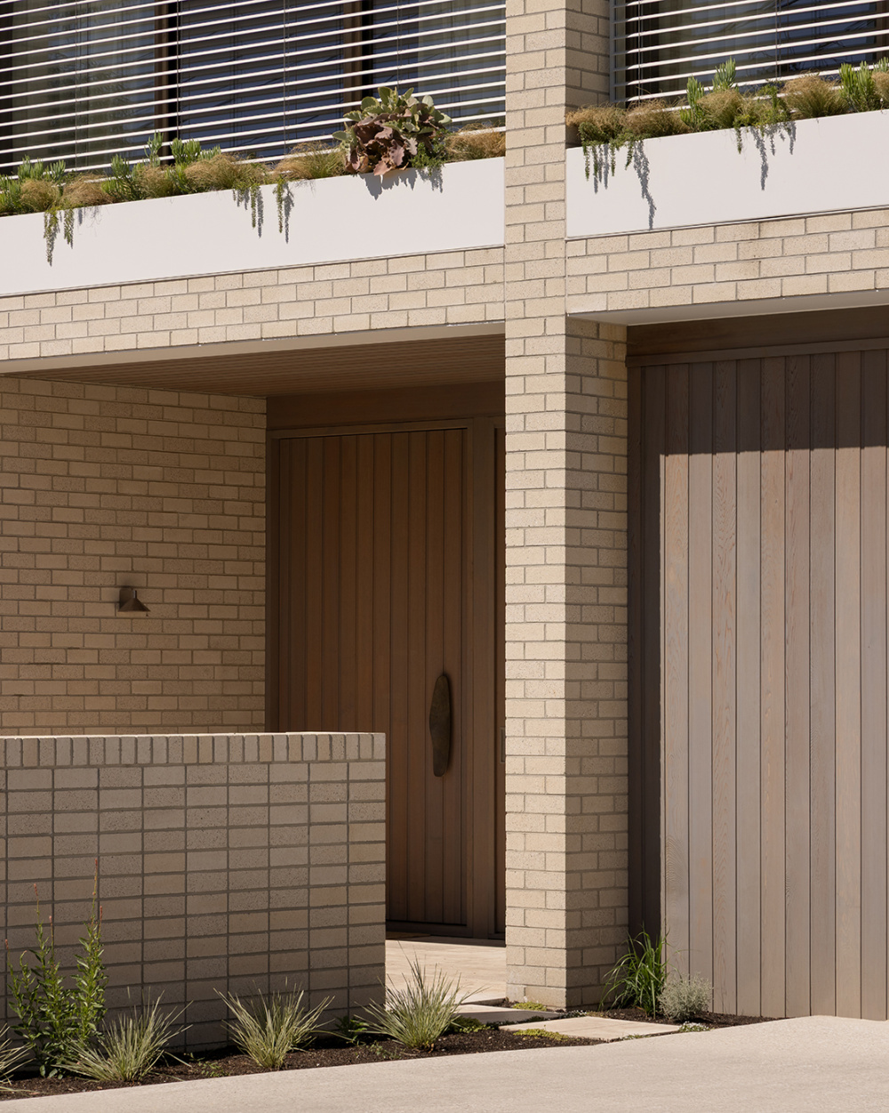 在建筑与居住的边界,这座定制化别墅设计以 “重复的韵律、简约的姿态与材质的克制”,书写了业主、设计师与建造者协作的工艺诗篇。它拒绝浮夸的装饰,以天然材质的本真、几何形态的规整与光线的灵动,构建出超越时代的栖居场域,让 “家” 成为材质、空间与生活对话的永恒容器。建筑的外立面是 “材质对话” 的第一重奏。浅色砖石的细腻质感与木材的温润肌理和谐相融,与预制混凝土的冷冽形成鲜明而优雅的对比 —— 这种对比并非冲突,而是材质性格的互补。百叶窗以精准的比例调节光线与阴影的平衡,让建筑在不同时段呈现出动态的光影变化;种植箱则以植物的柔化建筑的棱角,让人工造物与自然生长达成和解。