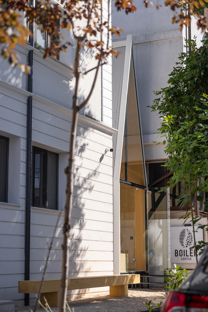 材料与制造:我们选择了轻便且精准的钢结构,以便快速组装。外立面以高性能、低辐射的三层玻璃为主,确保了透明度并产生棱镜效果。室内采用浅色木材饰面,传递出温暖感,并与外部形成一种修道院般的对比。场外预制:大部分结构采用场外预制方式,以加快组装速度、减少对环境的影响,并在受限的城市环境中降低浪费。