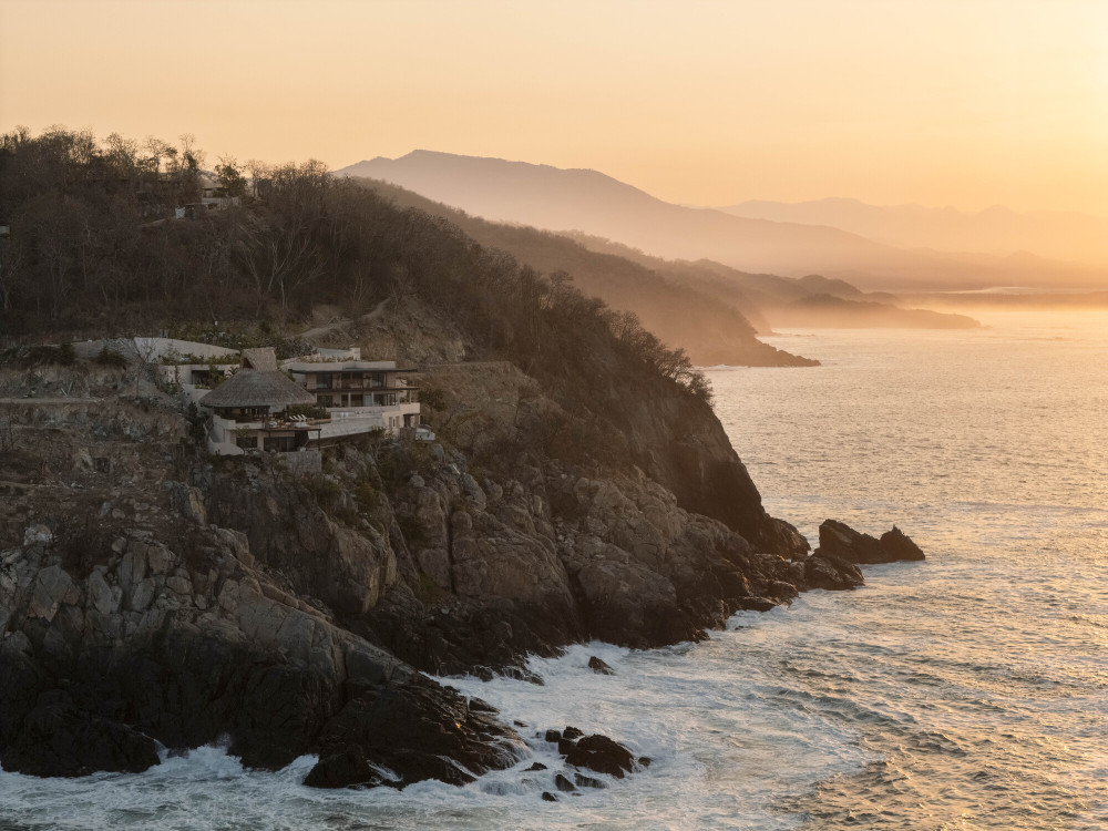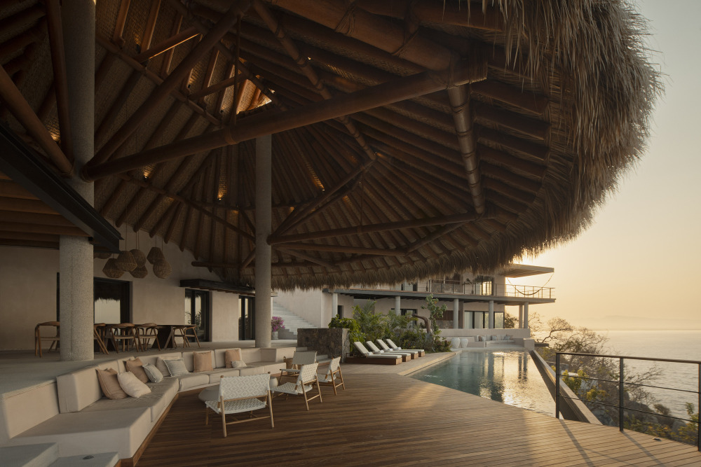 在墨西哥锡瓦塔内霍 2200 平方米的海滨崖地度假别墅设计,佐扎亚建筑事务所(Zozaya Arquitectos)以 “重构本土建筑、对话海岸地景” 为设计核心,打造出尤里住宅(Casa Yuri)。这座仅用 18 个月建成的住宅,以巨型帕拉帕(palapa)为空间灵魂,通过分层布局嵌入崖坡,用本土材质承载 “负责任的奢华”,让建筑既成为 “抵御海岸风暴的坚固容器”,又化作 “与太平洋、丛林共生的生活剧场”,为热带海岸高端住宅的 “在地性与现代性融合” 提供了绝佳范例。