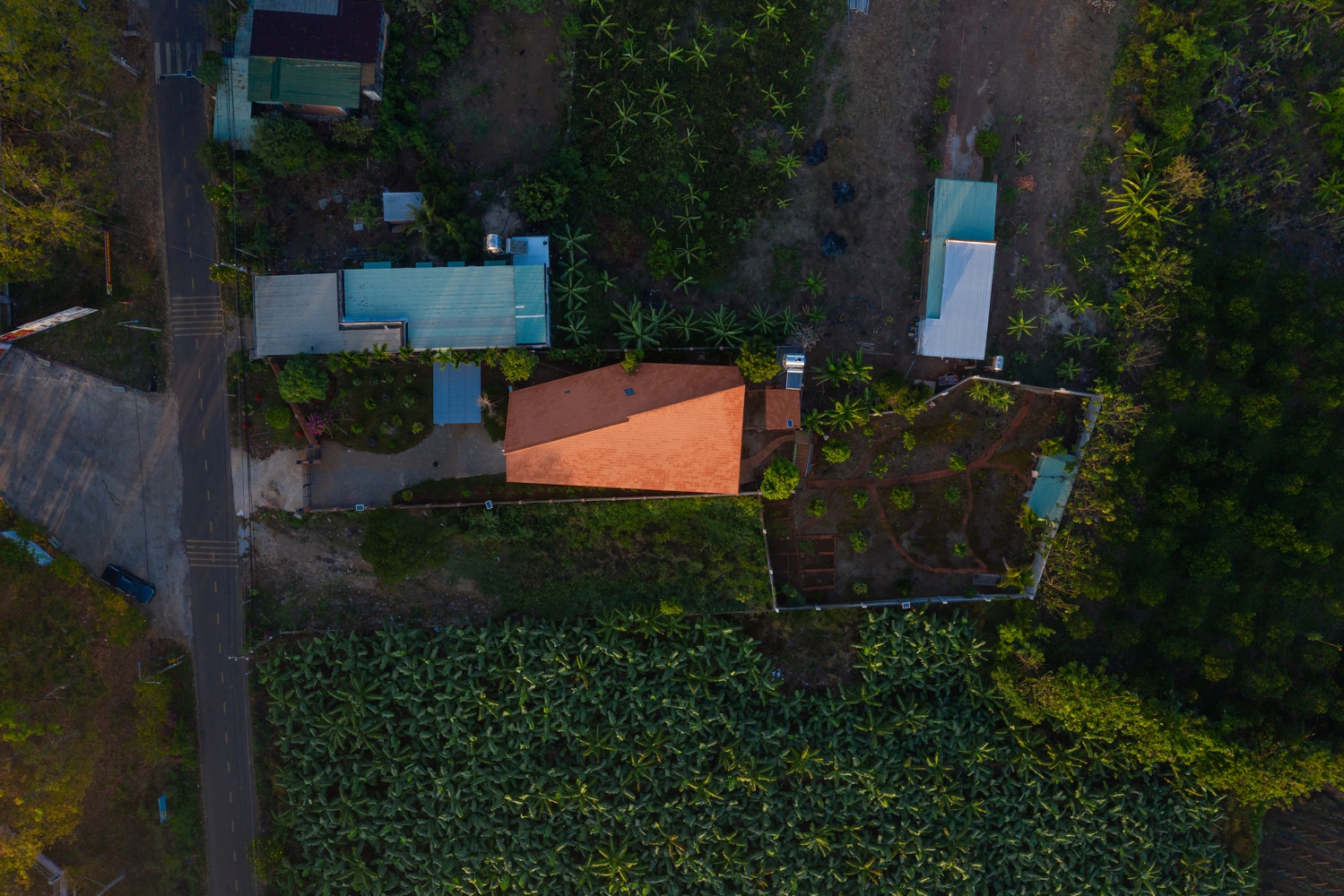 春西乡村住宅设计(Nha Xuan Tay)坐落于春西公社的一座小山上,直线距离约 8 公里。这栋住宅是为一个返乡的年轻家庭设计的,作为他们的周末休憩之所,在这里孩子们可以与大自然以及大家庭成员亲密接触。胡志明市和同奈省之间基础设施的改善,让这种生活方式变得更加便捷。