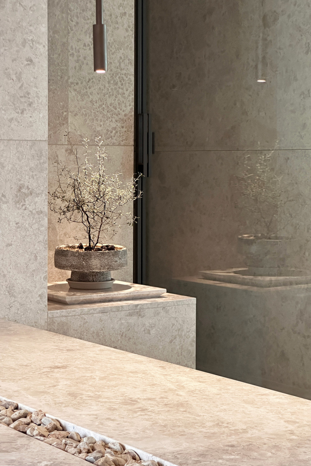 为了体现客户的品味和需求,我们通过装饰材料、色调、风格以及结构设计,重新诠释了空间的异域度假氛围。为了强调自然元素,我们融入了粗糙的岩石和砾石等元素,营造出一种户外氛围。