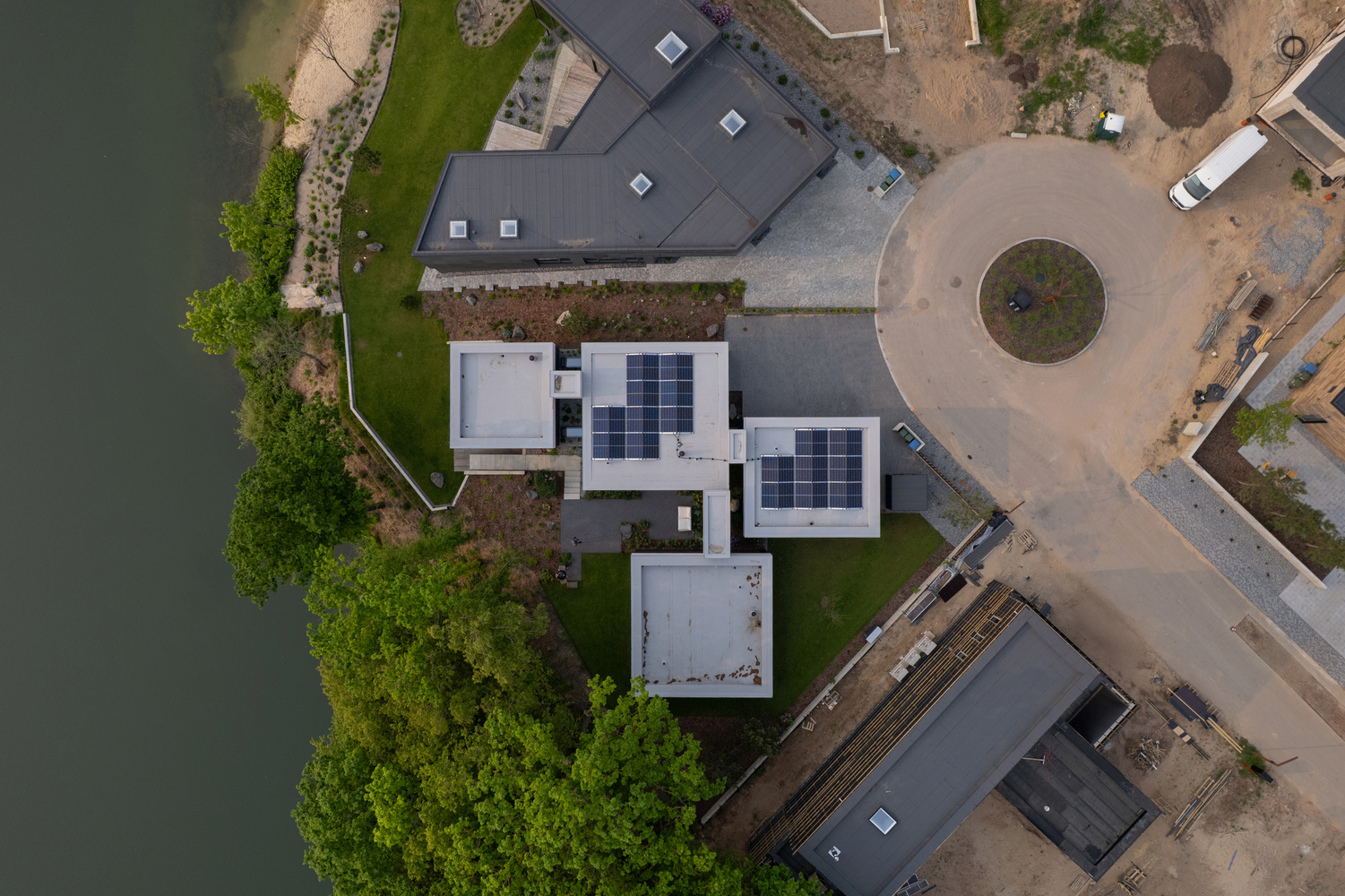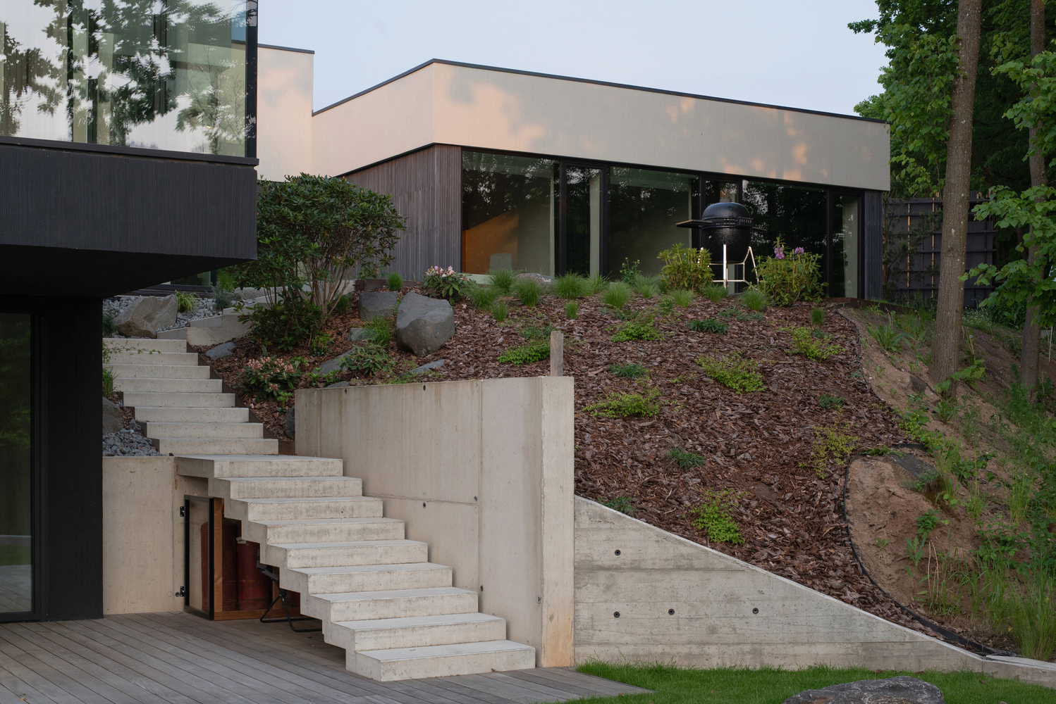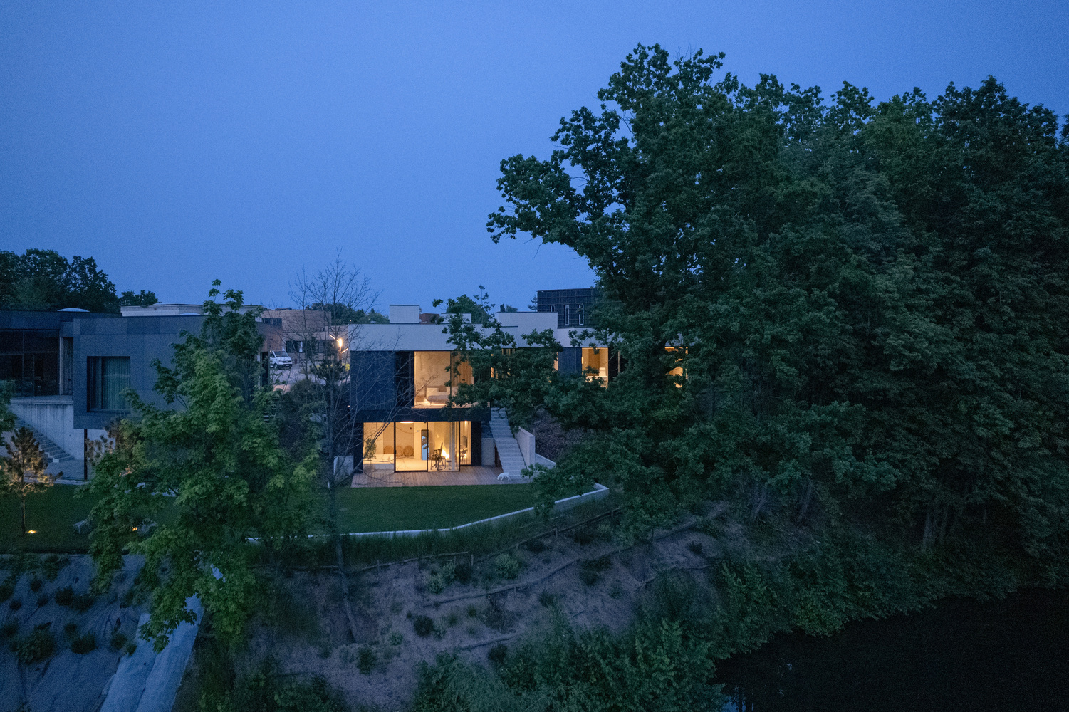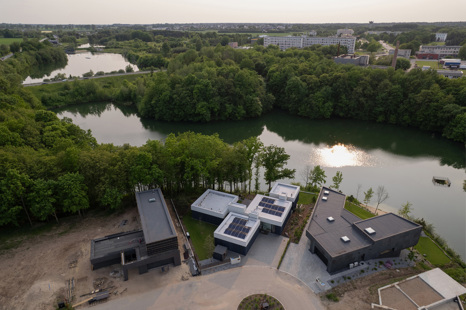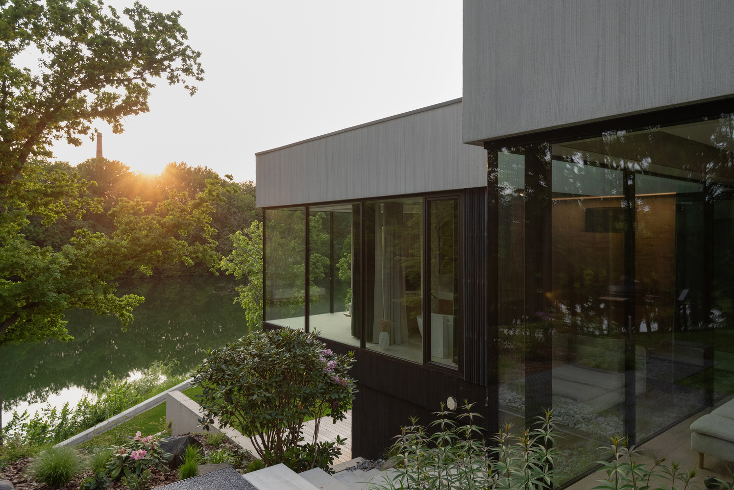 该湖畔别墅设计在立陶宛考纳斯(Kaunas)郊区、久负盛名的 NOA(Nature of Architecture,意为 “建筑之自然”)街区 —— 这里,自然与当代建筑的和谐并非愿景,而是标配 —— 一座建筑体量悄然崛起于静谧湖畔,为区域树立了新的设计标杆。这座独栋住宅由 G.Natkevicius & Partners 建筑事务所设计,以大胆且细腻的方式融入其独特且精心营造的环境之中。
