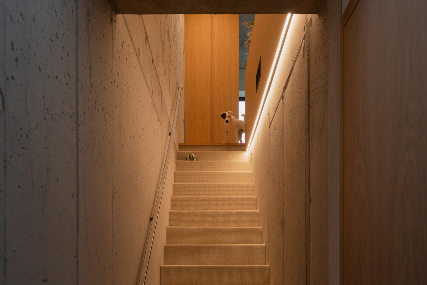 建筑外部的设计逻辑延续至室内:暴露的整体式钢筋混凝土屋顶成为核心特征,彰显建筑结构的 “诚实性”。除美学表达外,住宅的功能布局亦经过精心考量。298 平方米的空间被清晰划分为不同区域:一层以 54 平方米的家庭公共活动区为主;通过走廊与公共区隔开的是私密区域,包括带步入式衣帽间与浴室的主卧、儿童房及客房;入口区域配有宽敞车库,作为 “缓冲带” 将住宅与街道隔开。地下室藏着一处真正的惊喜:这里设有私人休闲空间,包含健身房、桑拿房与淋浴间。这是一处专为身心焕活打造的区域,进一步凸显这座住宅旨在提供 “完整生活体验” 的设计初衷。