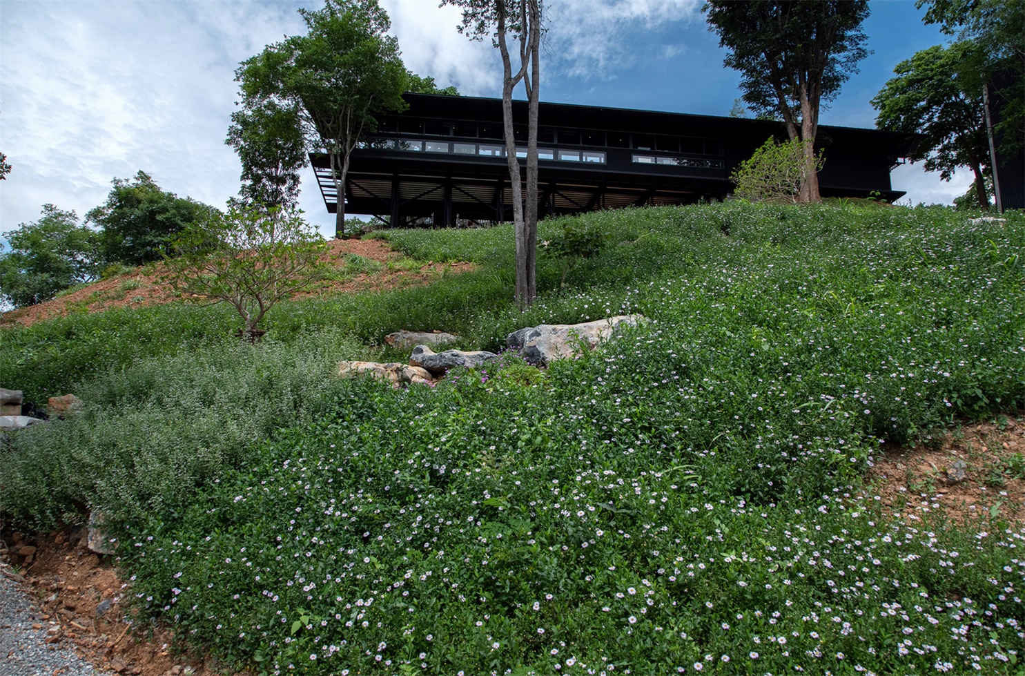 Khanong Phra 露营基地设计是一个占地 16 公顷的项目,位于呵叻府 Khanong Phra 的高地。该项目被倾斜的地形、山脊和平坦区域环绕,为游客提供了一个宁静的自然休憩之所,将必要的基础设施与舒适感和谐地融为一体。项目的建设始于地形的重新规划和基本基础设施的打造:三个大型内部用水蓄水池,以及专门的供水和供电站。