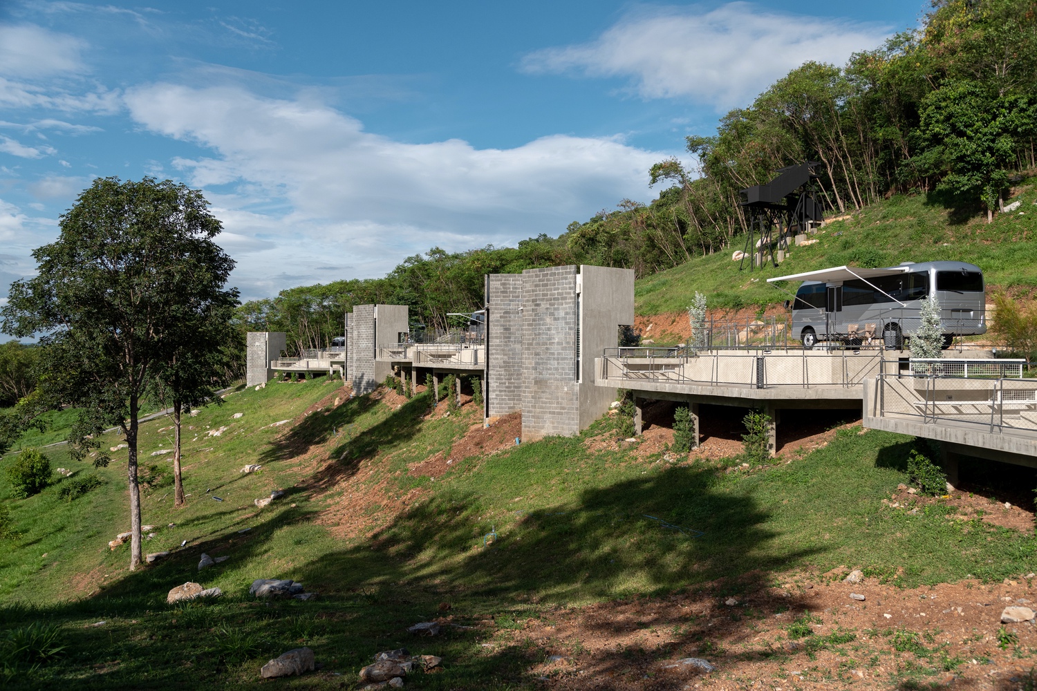 在这片土地的最高点是山顶营地,设有 6 个私人过夜单元。每个单元都有卫生间、休息区、停车位和预留的帐篷区域。作为体验的收尾,一个全景观景台提供了 Khanong Phra 山谷的壮丽景色 —— 为这场融入大地与自然的沉浸式体验画上了完美的句号。
