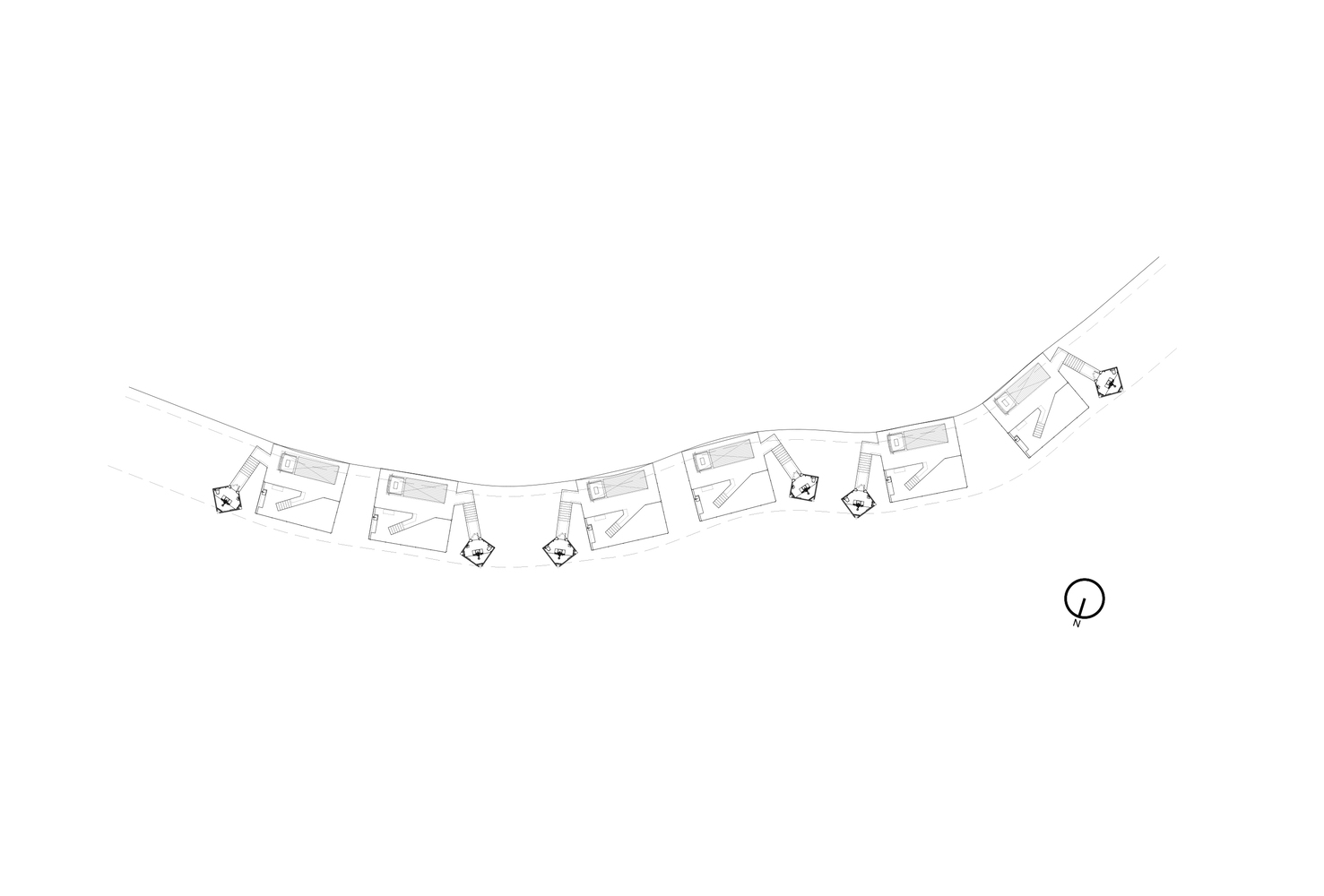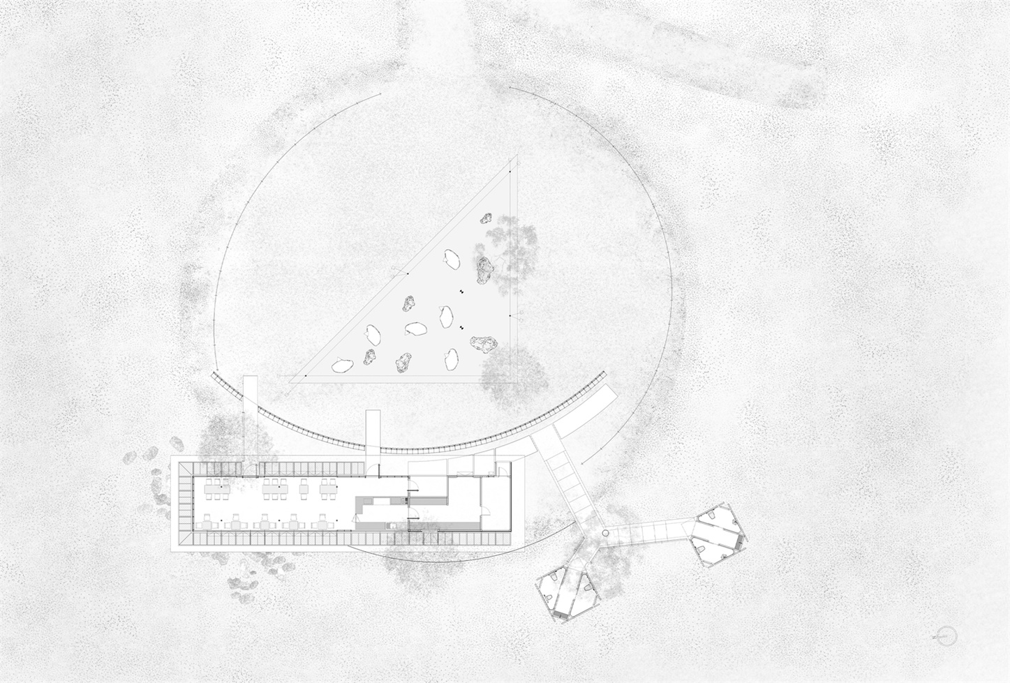 总平面图通过精心设计的路径将主要建筑元素连接起来,这条路径既可步行也可通车,优先考虑了空间之间的视觉和物理连续性。游客的旅程从靠近入口的信息中心和员工住宿区开始。不远处是鹅舍,它坐落在一个湖边,在这里可以在开放自然的环境中观赏鹅群。