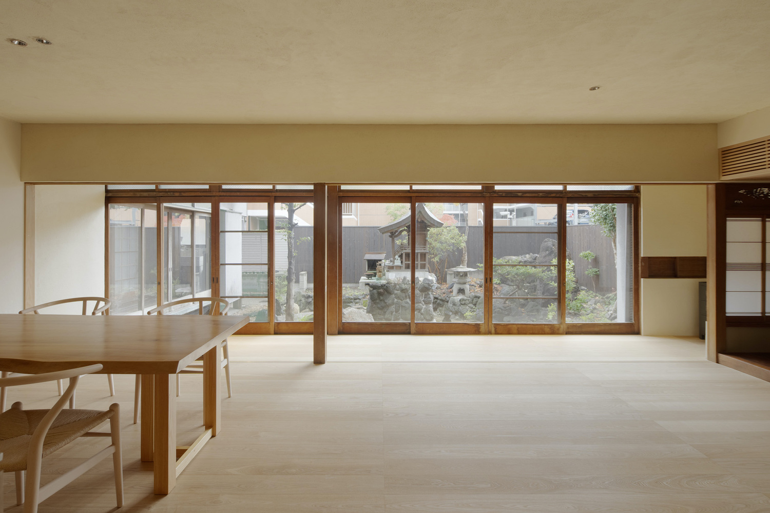 该日式住宅设计是一个独特的建筑,将住宅空间与商店结合在一起,并在建筑内设有一个尊贵的神龛。神龛位于一个宽敞的房间内,客户的曾祖母曾经在这里举行过神圣的仪式。神龛至今仍由虔诚的信徒精心维护。神龛中供奉着关西地区著名神社中广为尊崇的神灵,建筑本身也与当地社区有着深厚的联系。